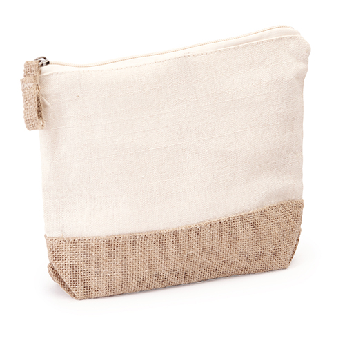 Beauty case in cotone ecologico da 180 g/m2 e juta. Colore naturale. Fondo e manico in juta. Cerniera dello stesso colore della borsa. 43187