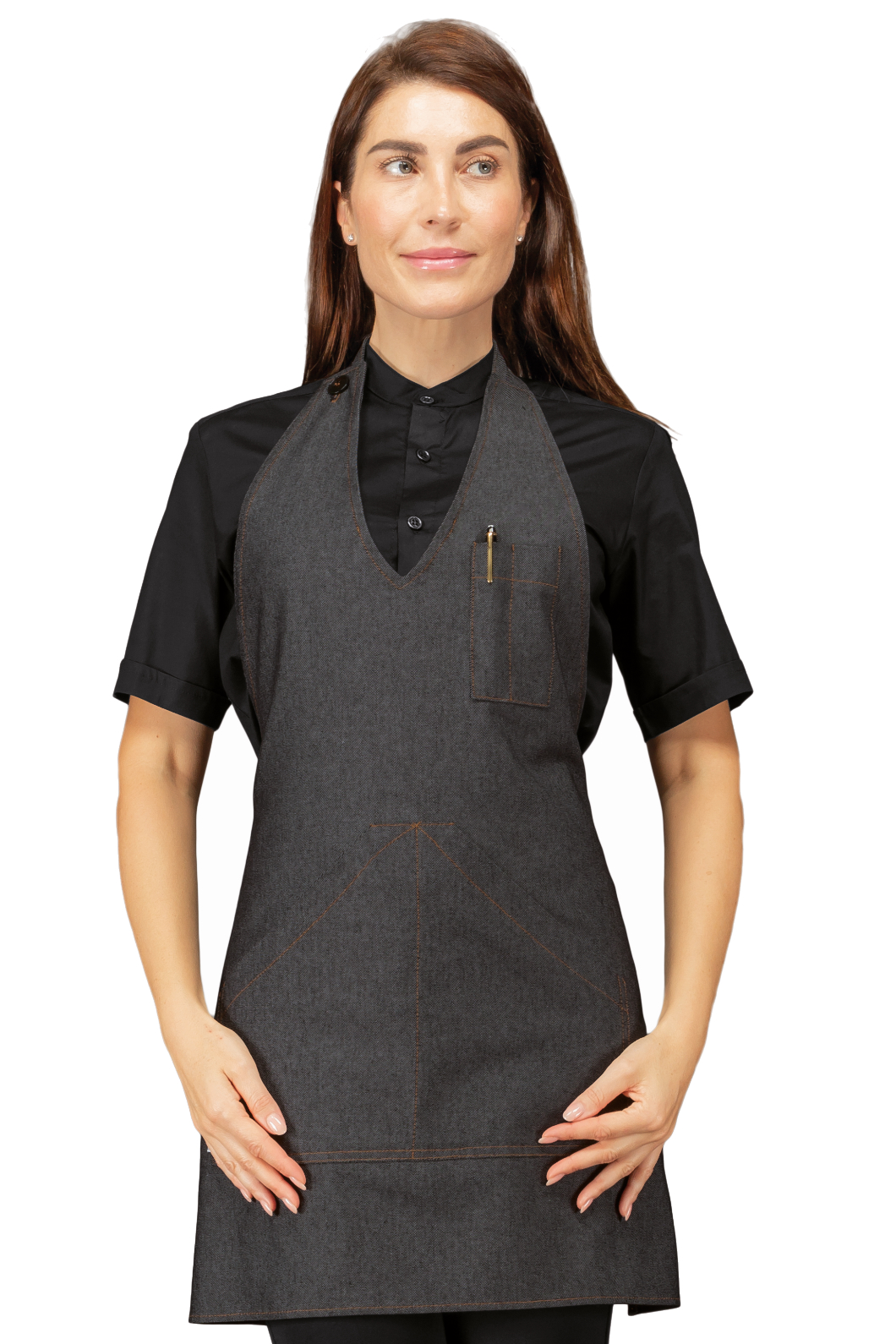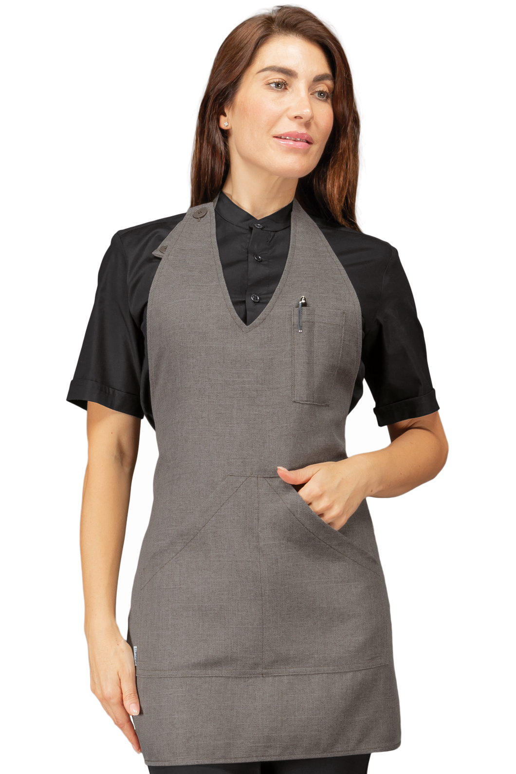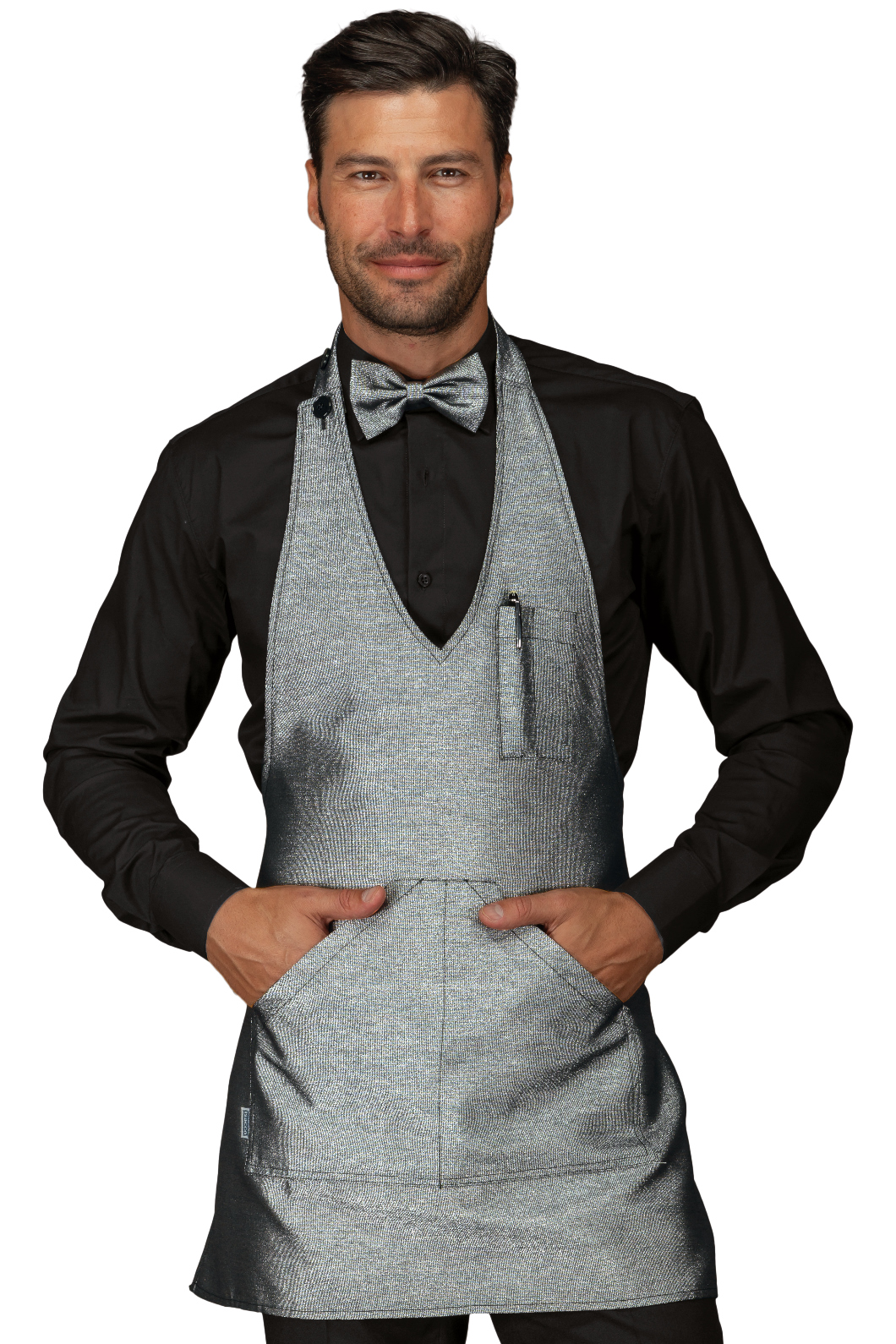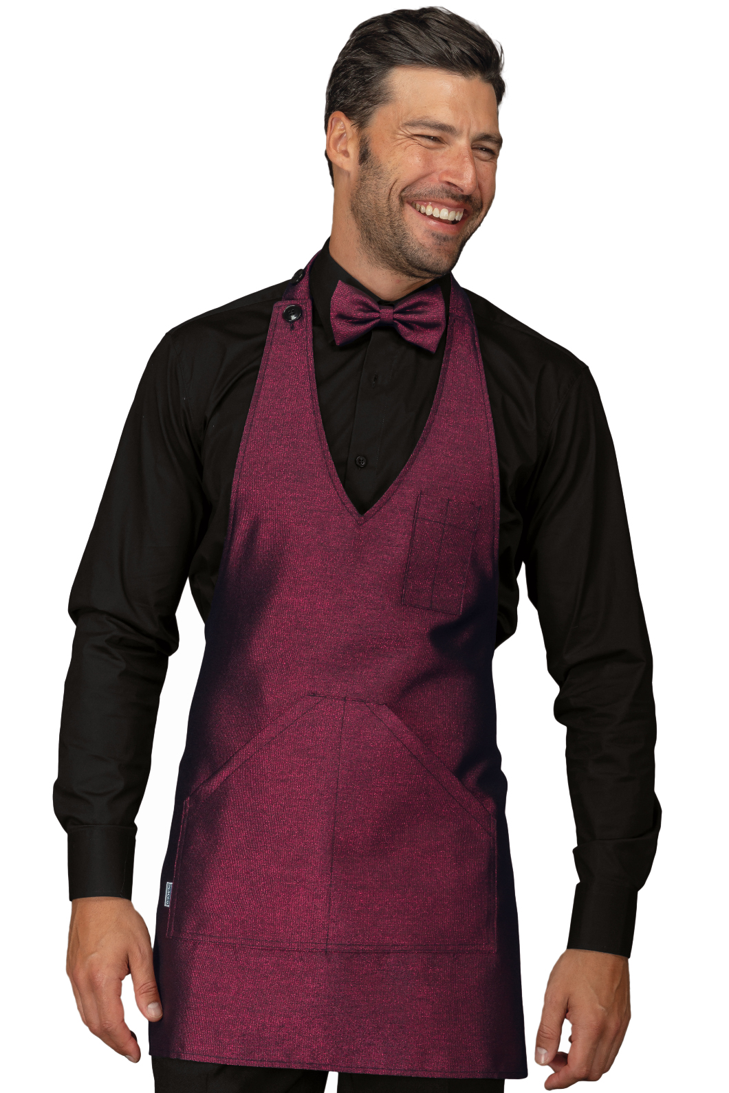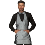 Grembiule Bistrot Unisex Sommelier corto nero. Ottima divisa da lavoro per cantine, bar, enoteche e bistro e per cameriere in servizio in sala. Con regolazione al collo per altezza della pettorina. Con 2 ampie tasche in vita e al petto.