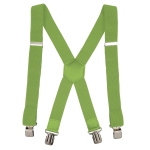 Spallacci elasticizzati con dorso a x. Realizzati con fettucce elastiche di alta qualità e robustezza per una migliore tenuta. Doppie clip metalliche con dentini per una migliore aderenza all´indumento sottostante. Passanti metallici con dentini per regolare gli spallacci a misura e mantenerli tesi per una migliore vestibilità. Dorso a forma di x con abbellimento esagonale e sul retro clip con tessuto in similpelle per una finitura elegante e una facile personalizzazione. Metodi di personalizzazione adatti (sull´area esagonale esterna): vinile, transferimento, serigrafia, ecc.Ideale come divisa da lavoro e divisa aziendale.