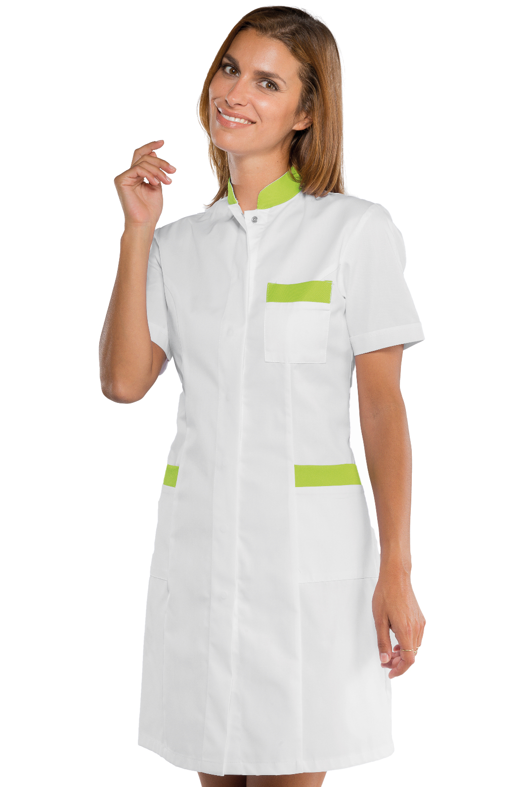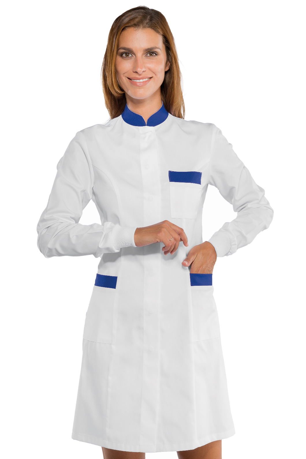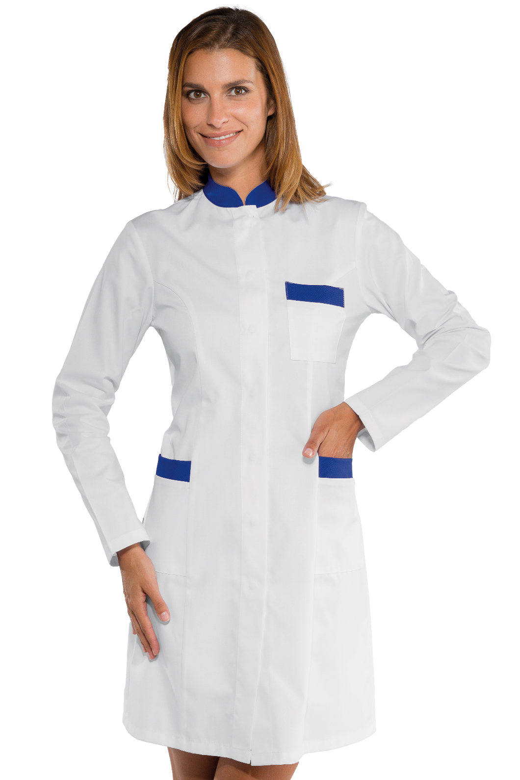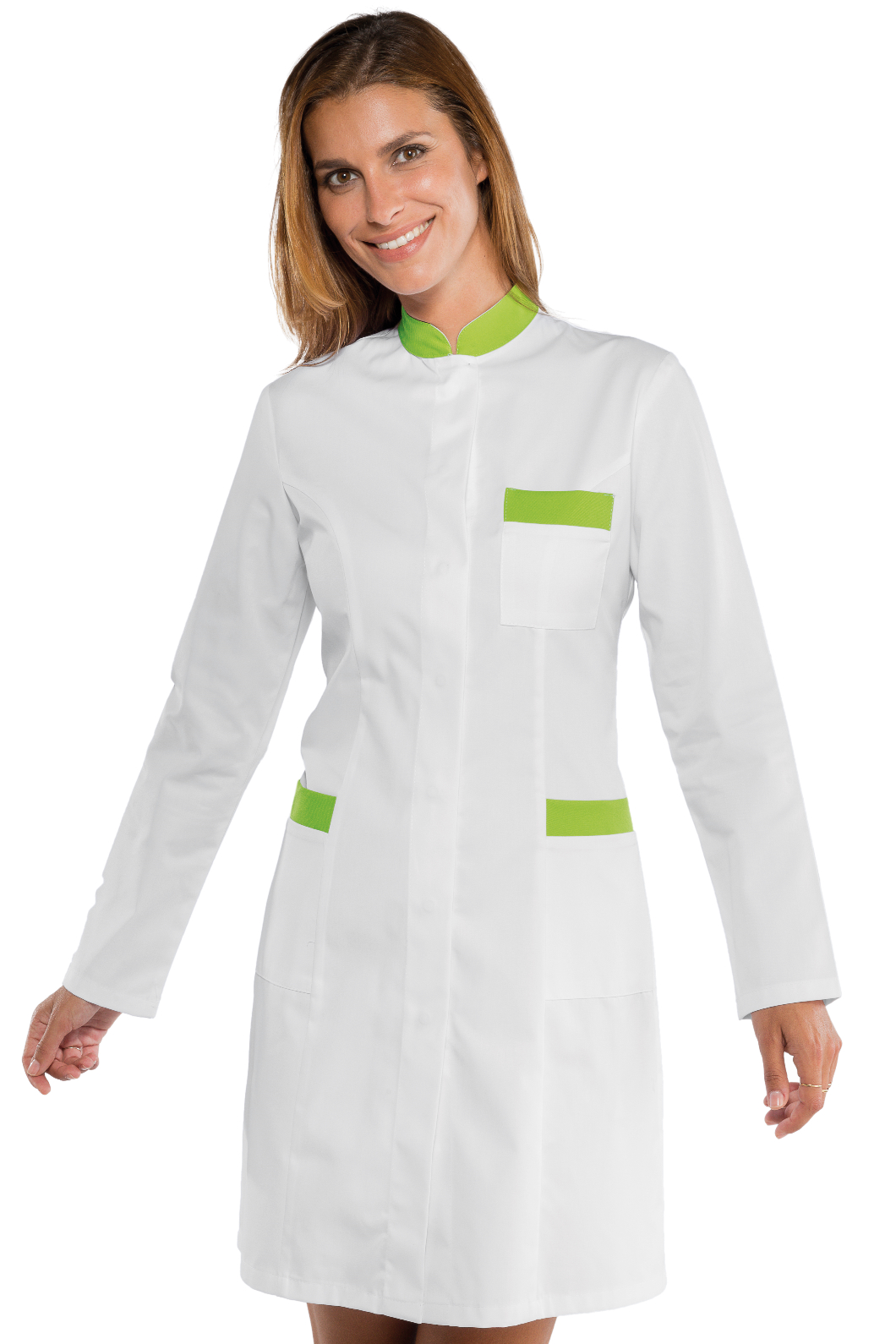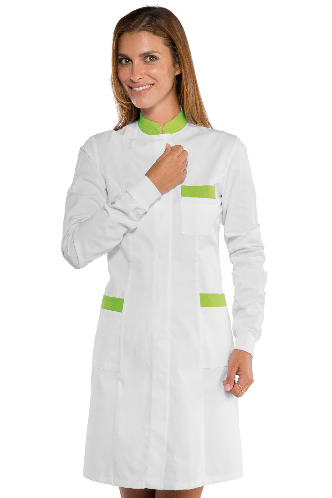 Il camice Catalina è un camice da donna a manica lunga bianco. Ottimo nel settore alimentare estetico e sanitario. Divisa da lavoro per aziende di servizi.