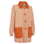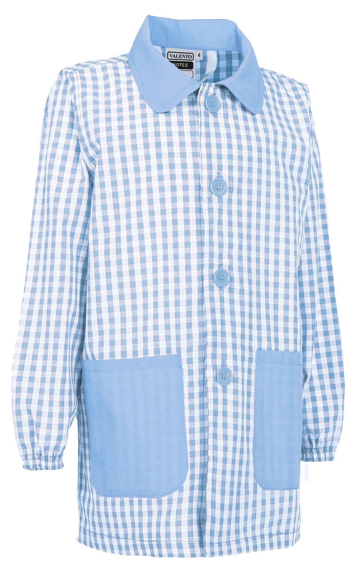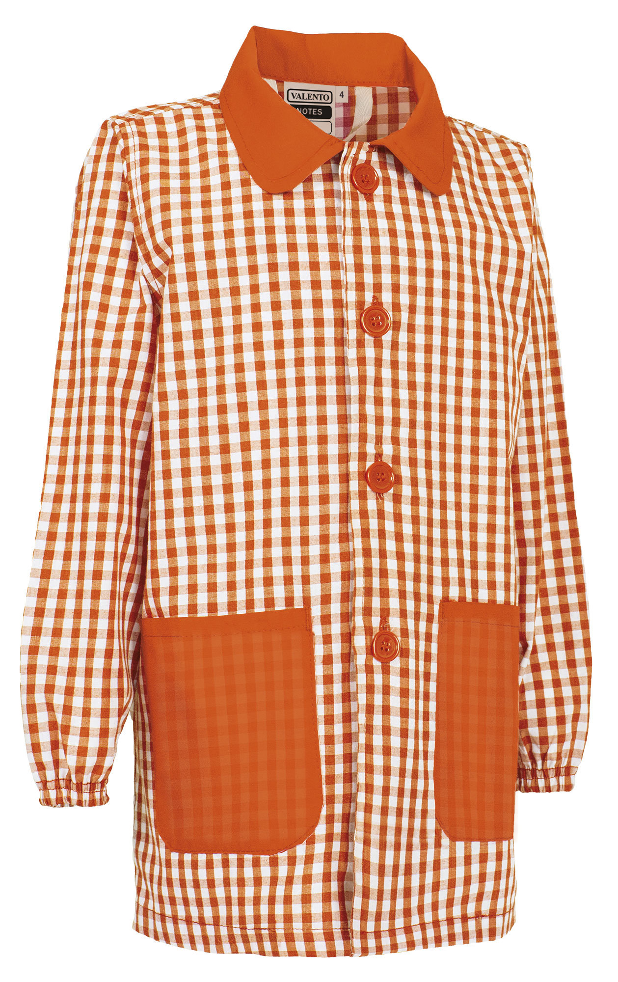 Grembiule per bambini con colletto a camicia, chiusura con grandi bottoni e ampie tasche. Realizzato in tessuto piatto a filo colorato con fantasia a scacchi, misto cotone con poliestere, resistente e duraturo. Collo a contrasto che include nella parte interna posteriore un grande nastro cucito per appenderelo facilmente. Polsini increspati con gomma elastica che si adattano comodamente. Due ampie tasche frontali di plaston di colore liscio, per avere tutto accessibile. metodi di personalizzazione idonei: serigrafia, ricamo, trasferimento, patch. Ideale per l´uso in scuole materne e scuole elementari.