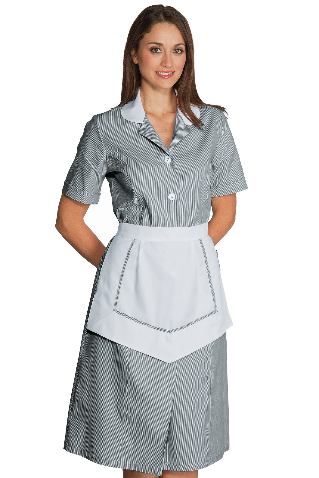 Il camice Lipari è un camice da donna con grembiulino con manica a 3/4 a righe nere. Ottimo nel settore alimentare estetico e sanitario. Divisa da lavoro con grembiule per aziende di servizi o in alberghi e hotel per donne pulizie o servizio in camera.