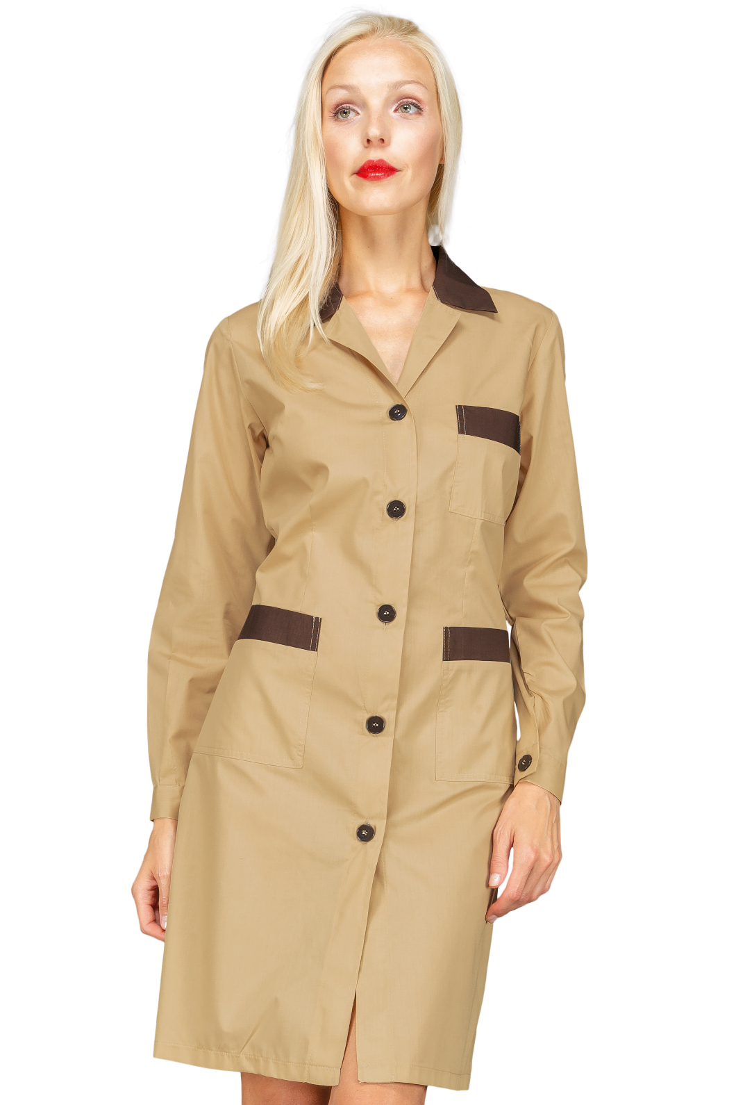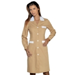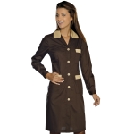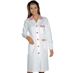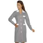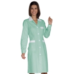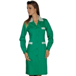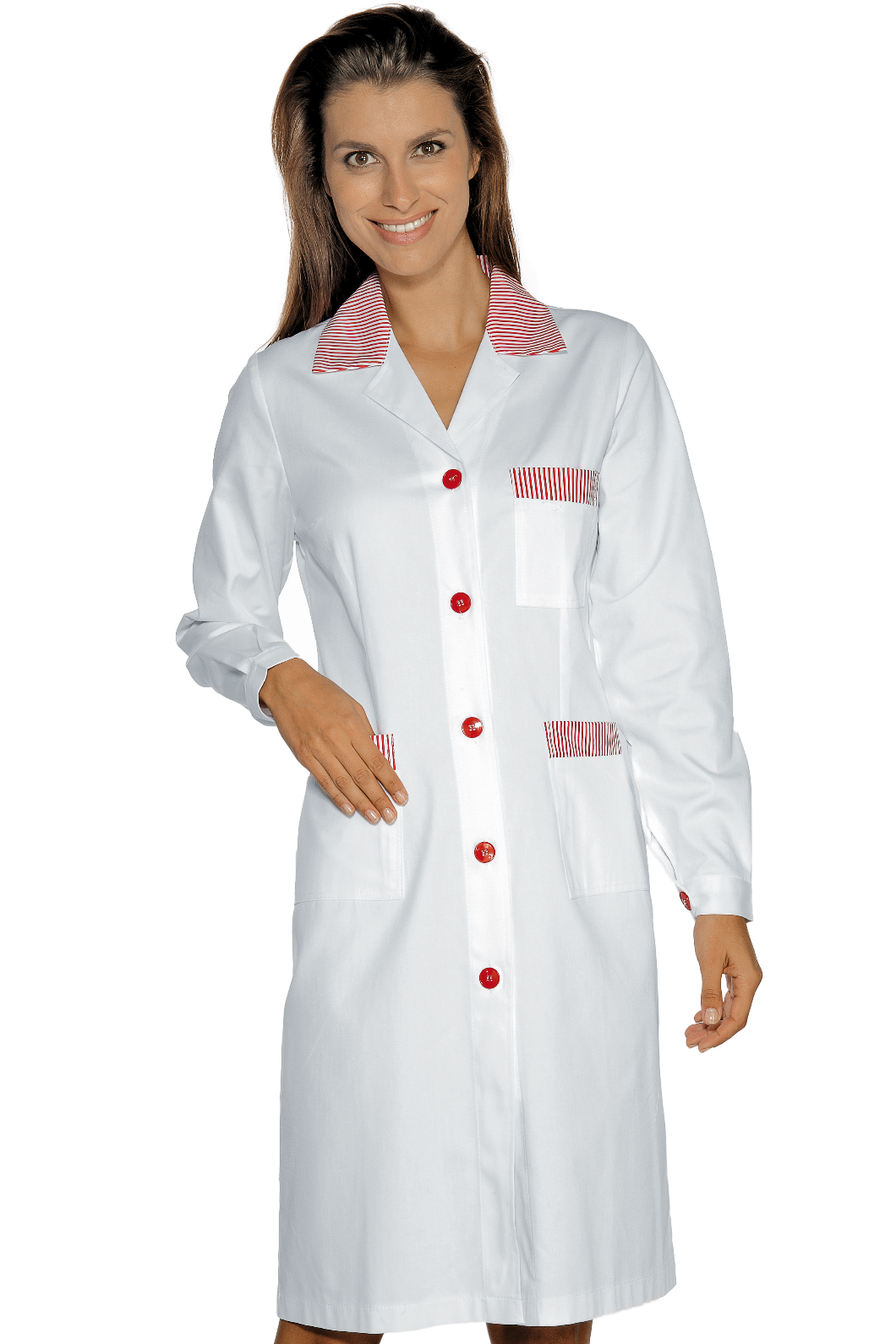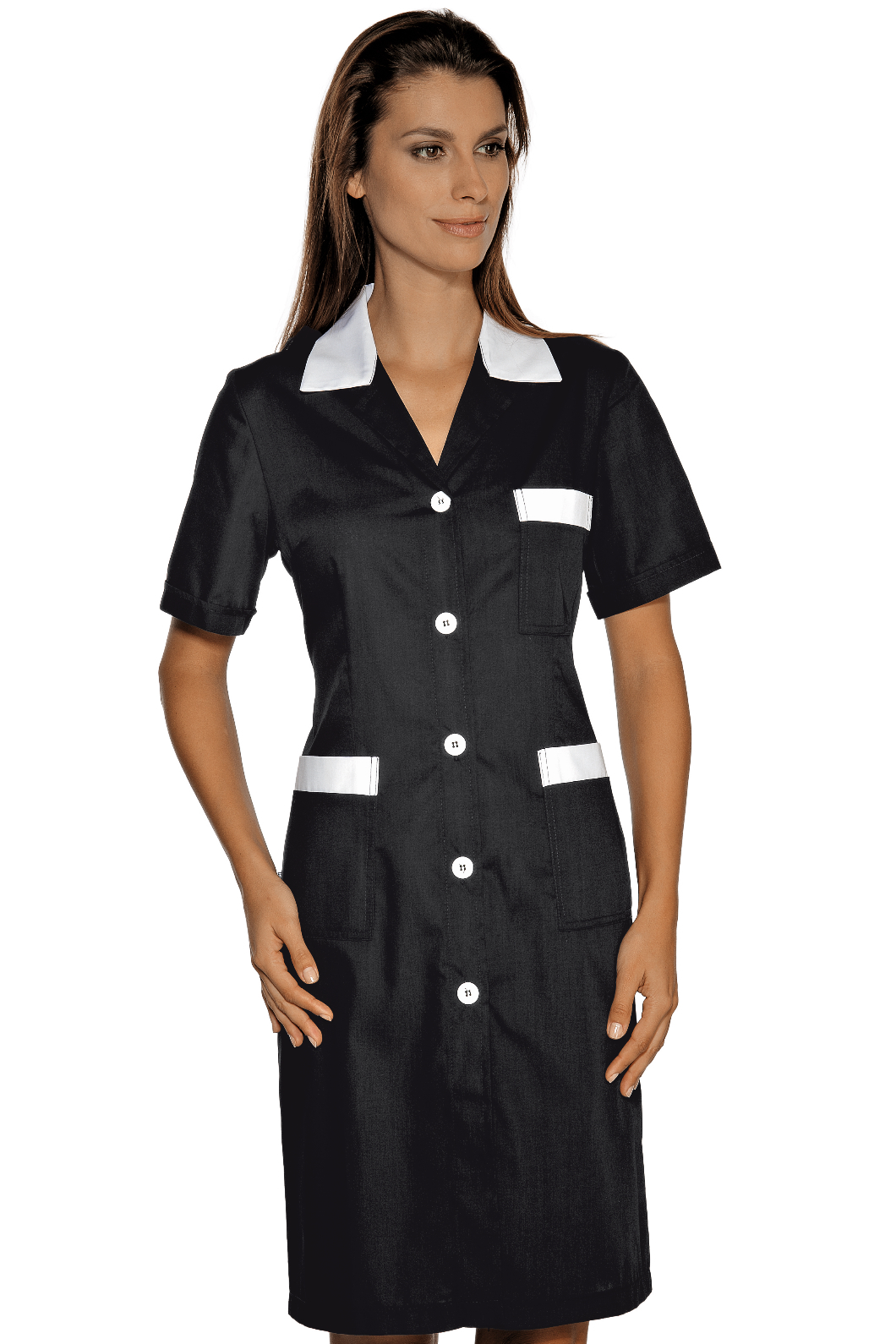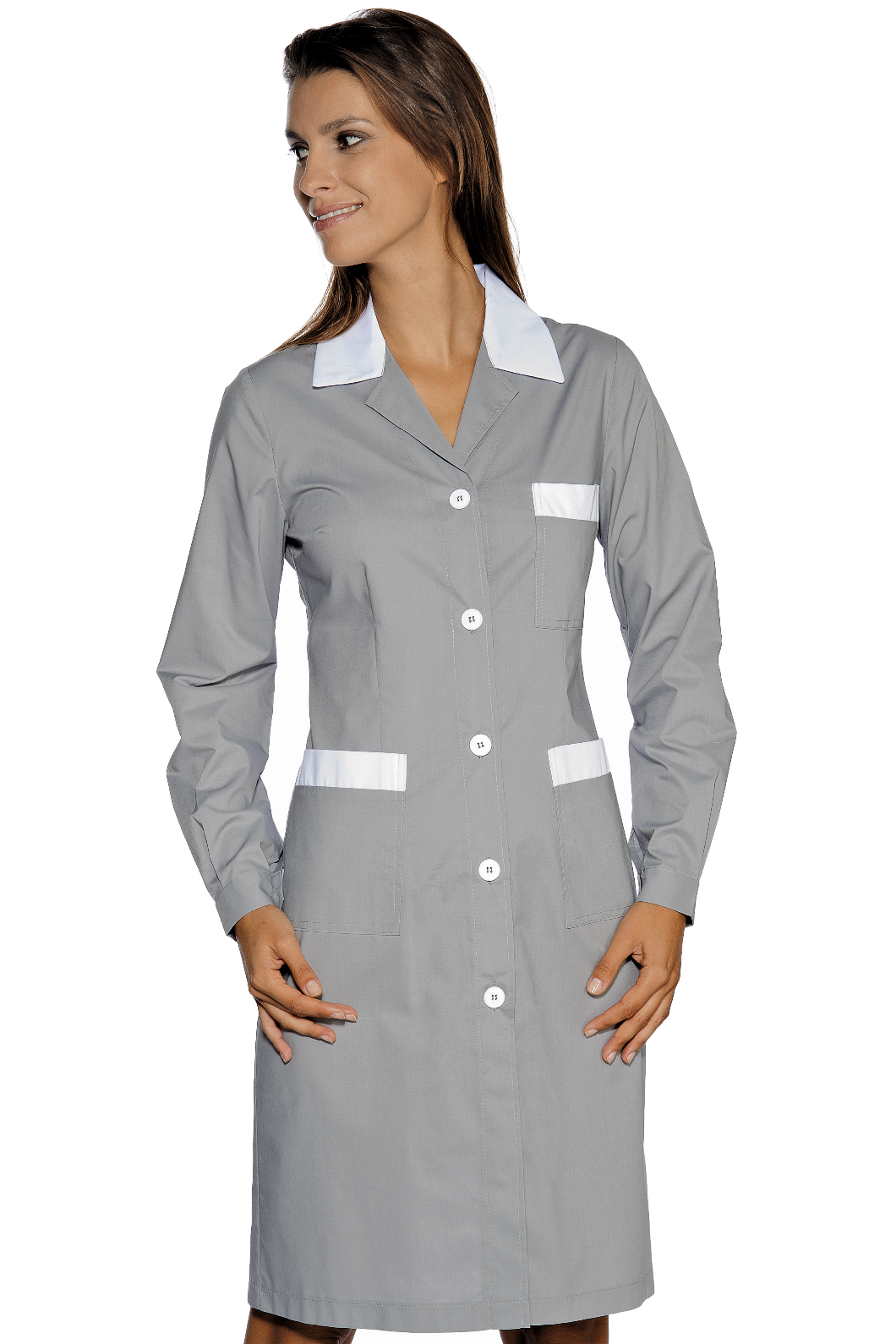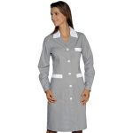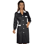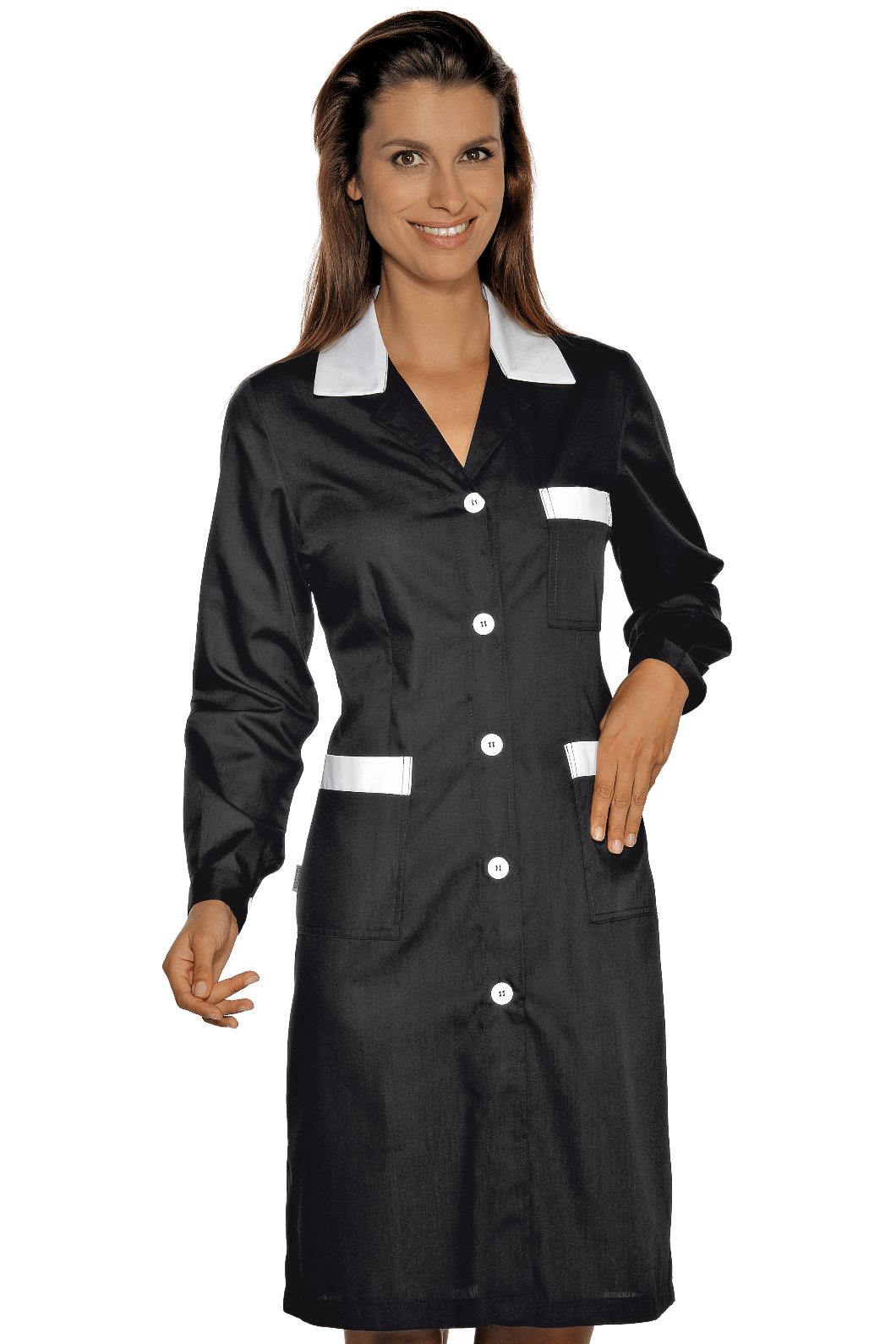 Il camice Positano è un camice da donna a manica lunga nero e bianco. Settore medicale, estetico, sanitario o alimentare. Perfetta divisa da lavoro per medico, dottoressa, farmacista, infermiere o come camice da lavoro per imprese di servizi. Con collo ed inserto tasche in contrasto.