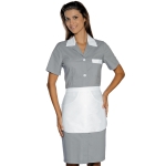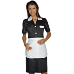 Il camice Positano M/M è un camice con grembiulino da donna a mezza manica nero e bianco. Per settore alberghiero, privato o alimentare. Ideale come divisa da lavoro per pulizia al piano e domestica o come camice da lavoro per imprese di pulizie e servizi.
