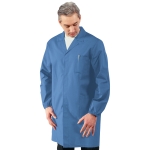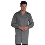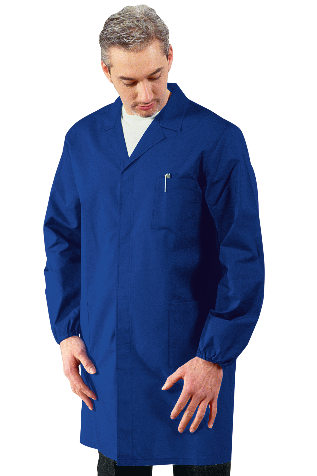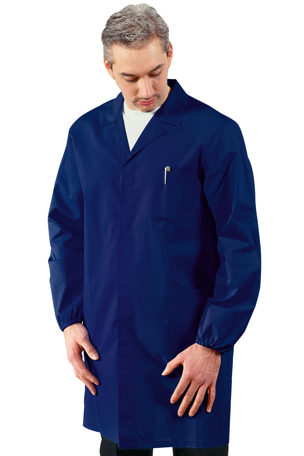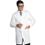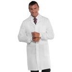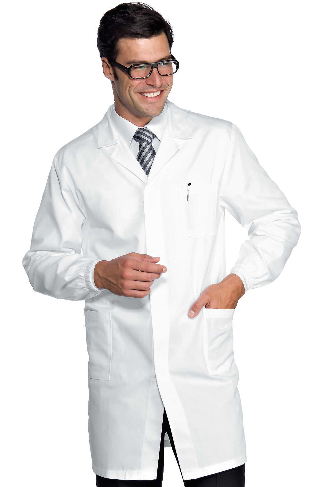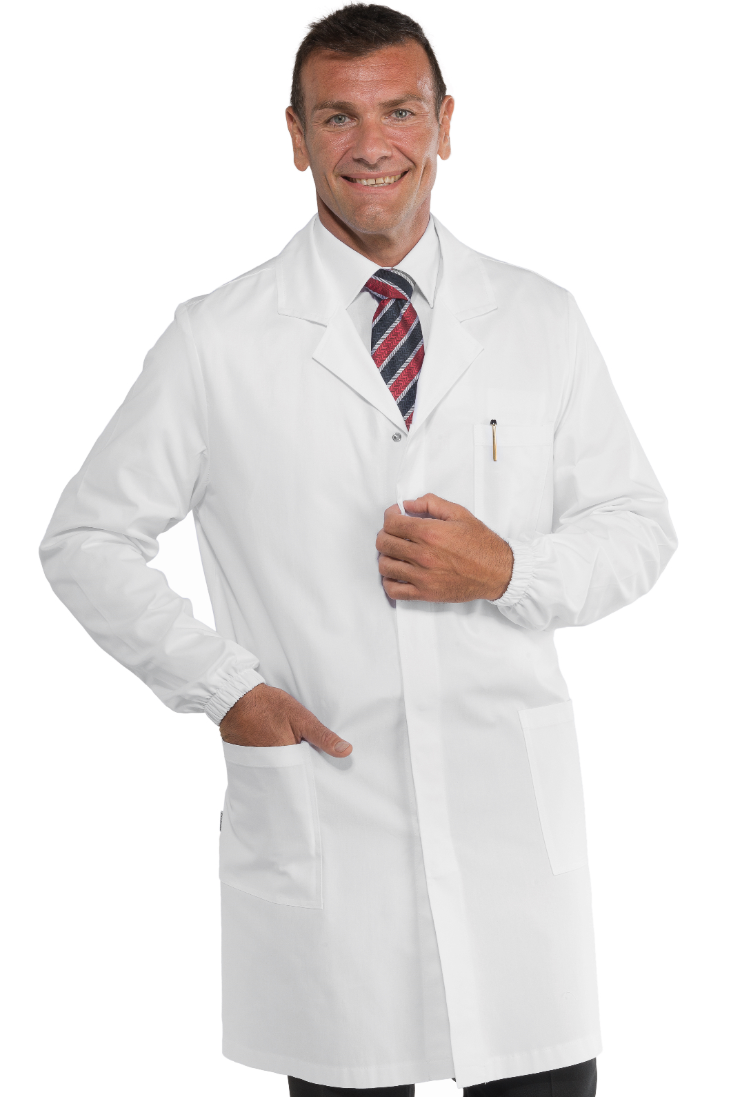 Camice uomo lungo 100 cm a manica lunga bianco. Settore medicale, estetico, sanitario, ospedaliero, alimentare e industria. Ottima divisa da lavoro per medico, infermiere, farmacista. Bottoni a pressione e tasche e taschino al petto.