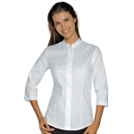 La camicetta Hollywood è una camicia da donna a manica lunga bianco. Ideale per settore alberghiero, ristorazione. divisa da lavoro per sala, bar, pub, ristoranti, alimentari. L’indumento è sciancrato e stretch con bottoni a vista e presenta collo alla coreana.