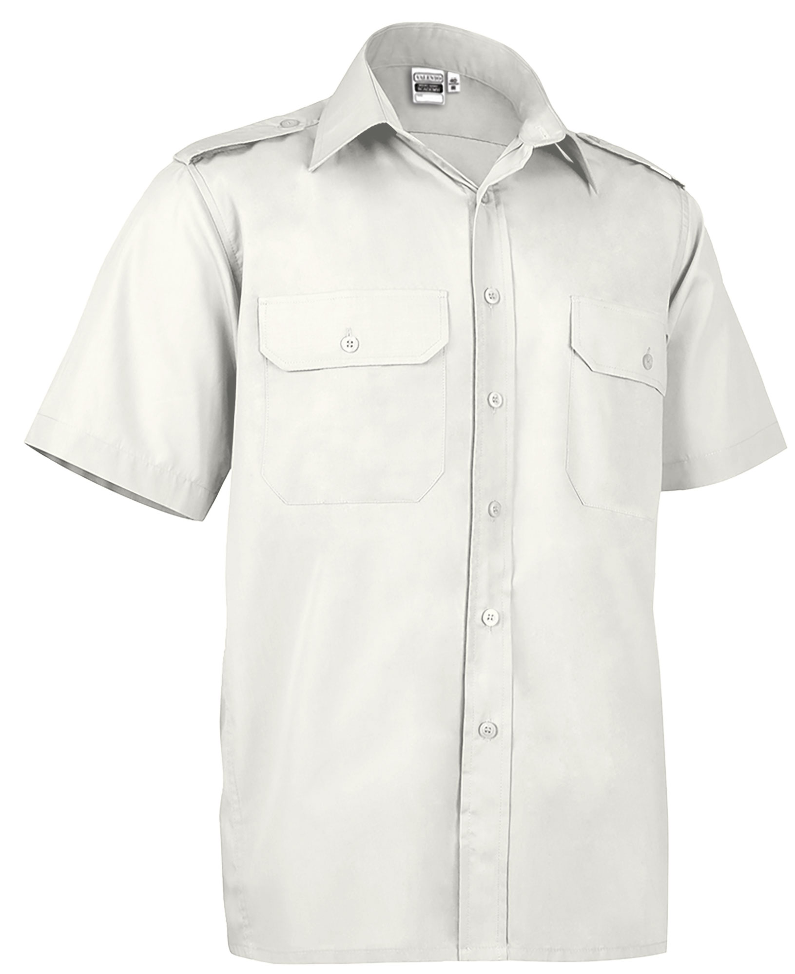 Camicia a manica corta con spallacci e due tasche. Realizzata in tessuto popeline da 210 fili, misto cotone/poliestere, leggero, resistente e durevole. Due tasche sul petto, con chiusura a pattina e bottoni tono su tono, per avere tutto a portata di mano e per evidenziare il marchio. Pattine rinforzate sulle spalle con fodera interna e bottoni tono su tono per una migliore chiusura di strisce o distintivi. Maniche con orlo esterno e cuciture rinforzate per una maggiore resistenza. Metodi di personalizzazione idonei: serigrafia, ricamo, trasferimento, patch. Ideale per le divisa di sicurezza e come abbigliamento da lavoro.