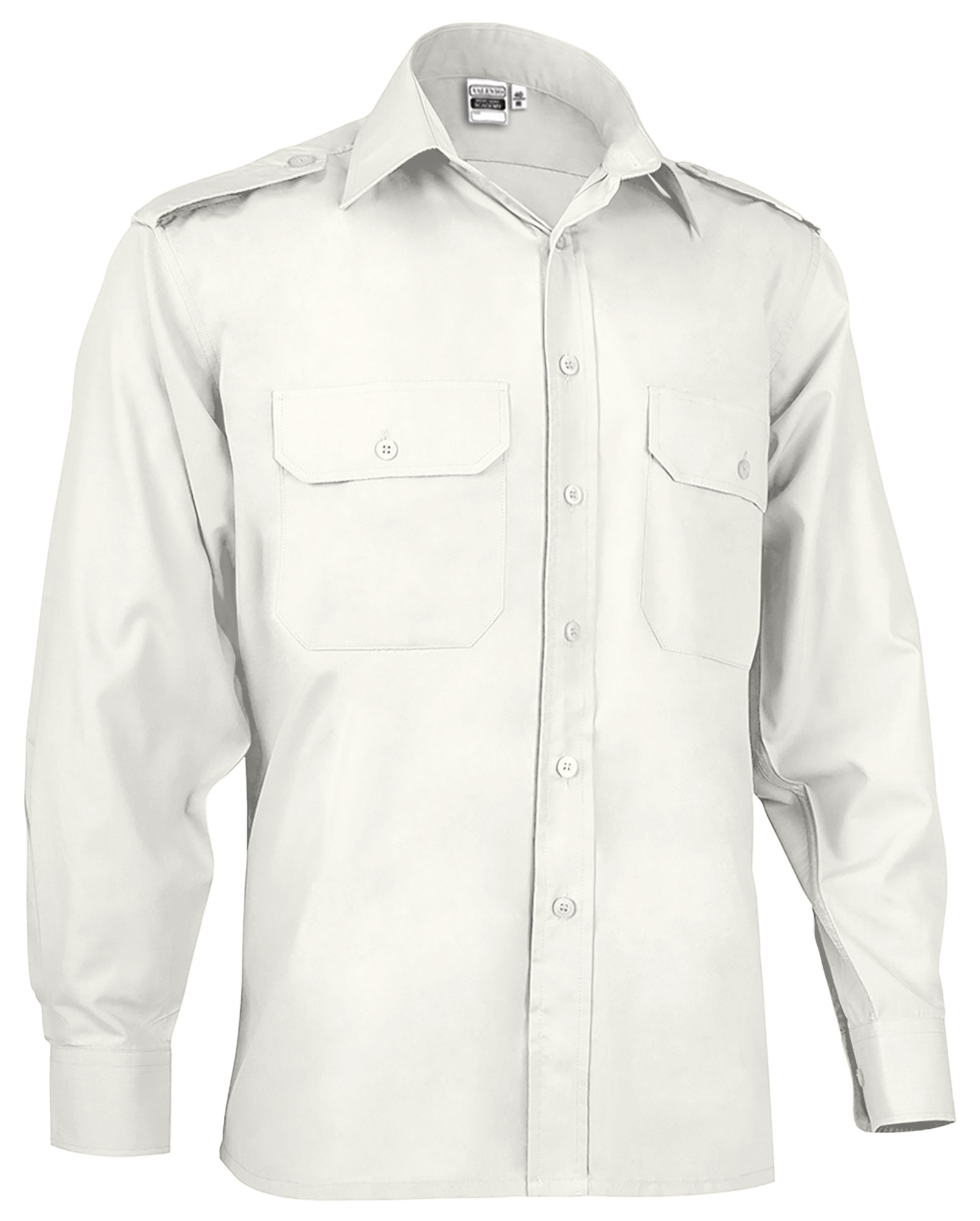 Camicia a manica lunga con spallacci e due tasche. Realizzata in tessuto popeline da 210 fili, misto cotone/poliestere, leggero, resistente e durevole. Due tasche sul petto, con chiusura a pattina e bottoni tono su tono, per avere tutto a portata di mano ed evidenziare il brand. Toppe sulle spalle rinforzate con fodera interna e bottoni tono su tono, per trattenere meglio le strisce o gli stemmi. Polsini e chiusura centrale con bottoni tono su tono. Metodi di personalizzazione idonei: serigrafia, ricamo, transfer, patch. Ideale per le divisa di sicurezza e come abbigliamento da lavoro.