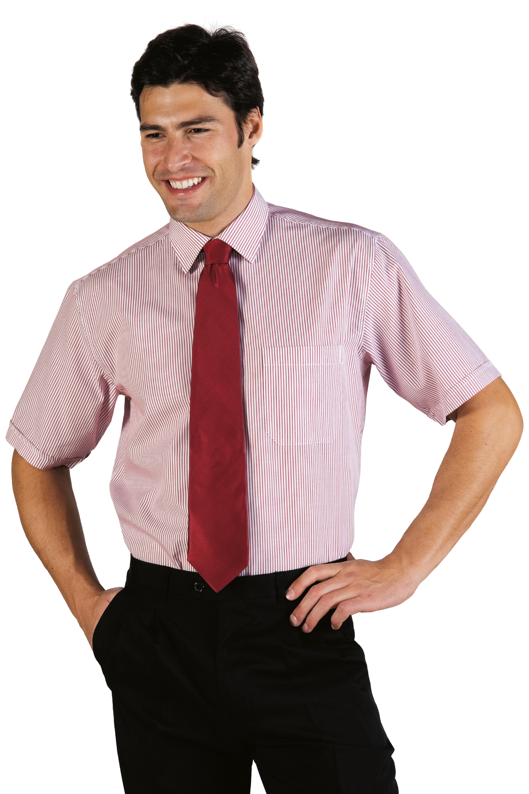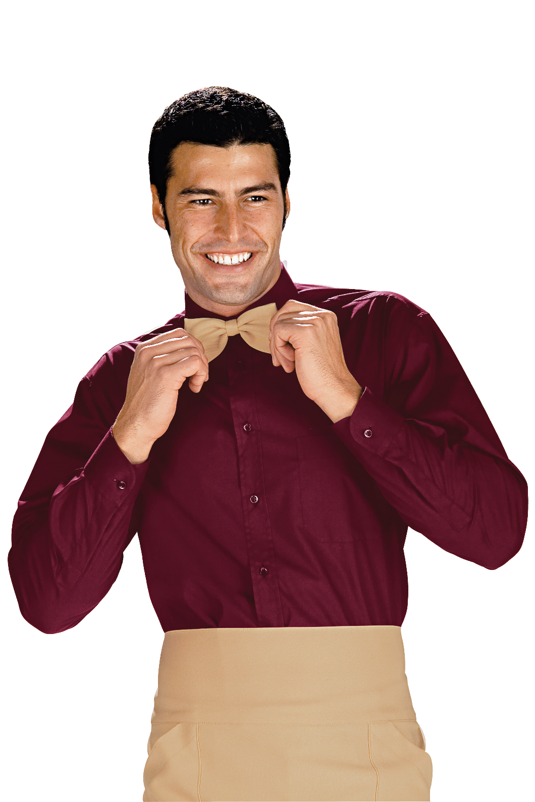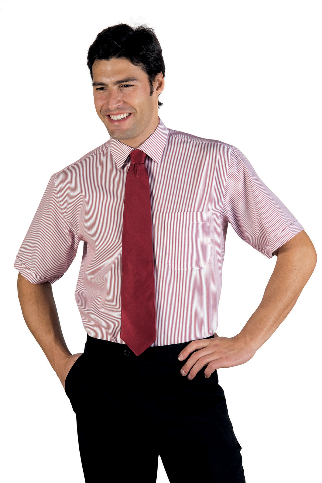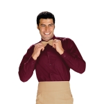 Camicia unisex Classica con collo classico a manica lunga a righe bordeaux. Ottima per settore alberghiero e servizio in sala. Divisa da lavoro per bar, pub, ristoranti, enoteche e catering. Con un taschino al petto. Modello da uomo e da donna.