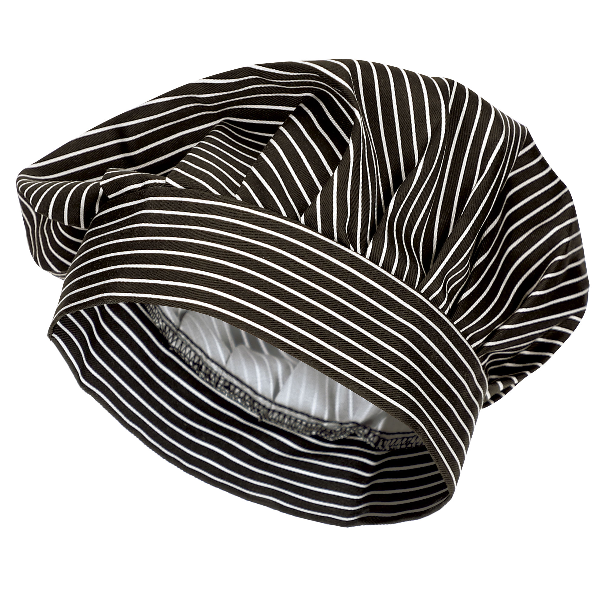 Cappello da chef in gessato. Realizzato in twill misto cotone con poliestere resistente e duraturo. Parte superiore plissettata per un effetto bombato. Ampio contorno con chiusura in velcro nella parte posteriore per una migliore vestibilitá. Cuciture interne rifinite che ne aumentano la resistenza. Metodi di personalizzazione idonei: serigrafía, ricamo, trasferimento, vinilo. Ideale come abbigliamento da lavoro e divisa da ristorazione.