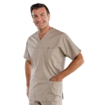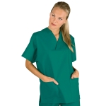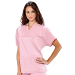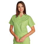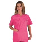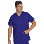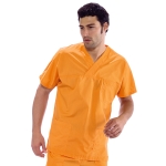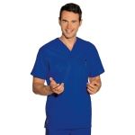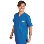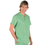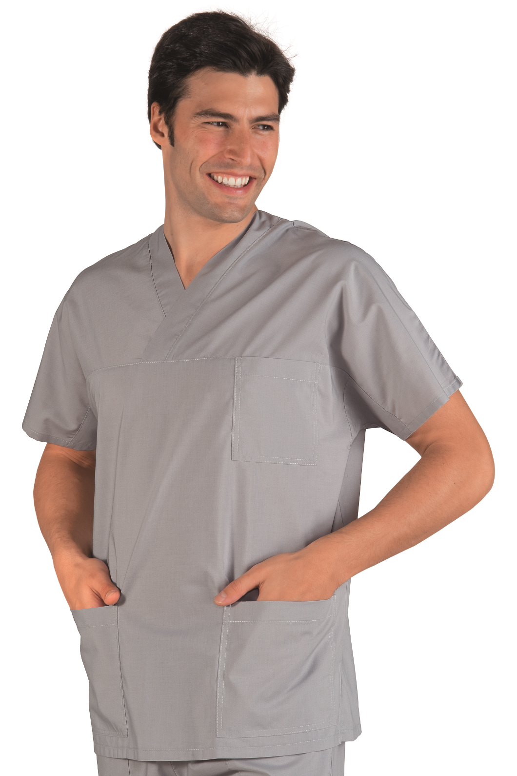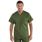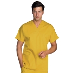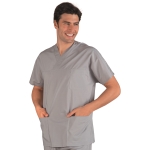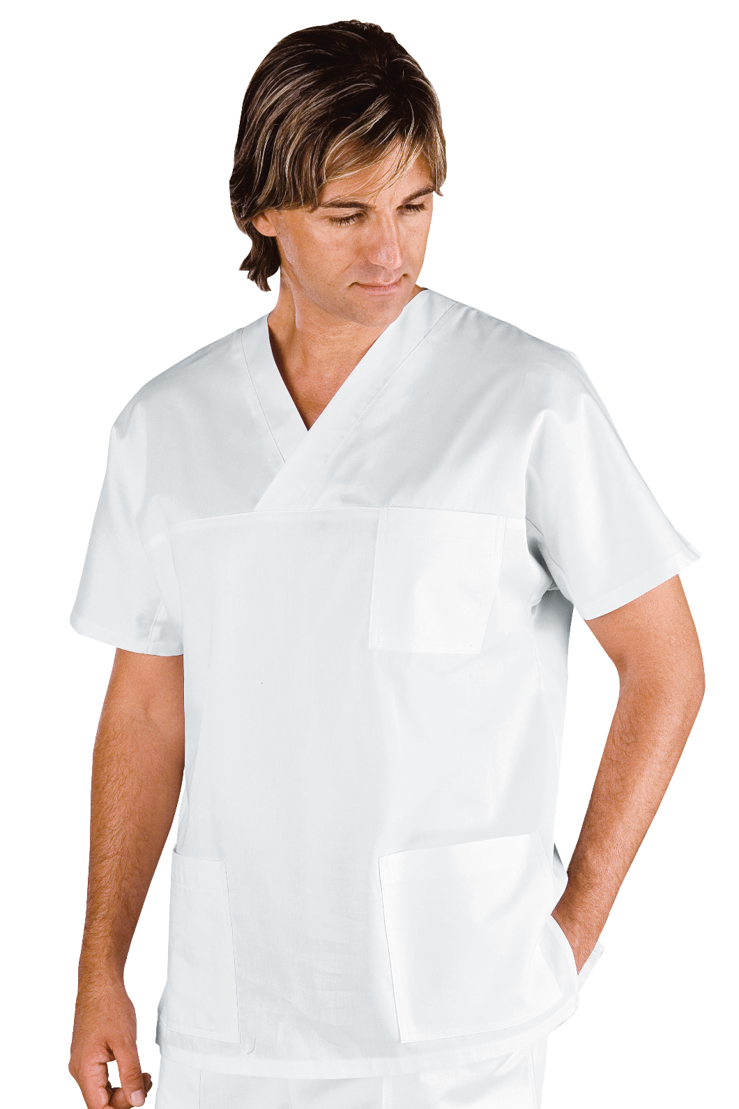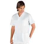 Casacca a collo a V unisex a mezza manica bianco. Per settore medicale, estetico, sanitario e ospedaliero. Ideale come divisa da lavoro per medico ed infermiere uomo e donna. Con 2 tasche e taschino al petto.
