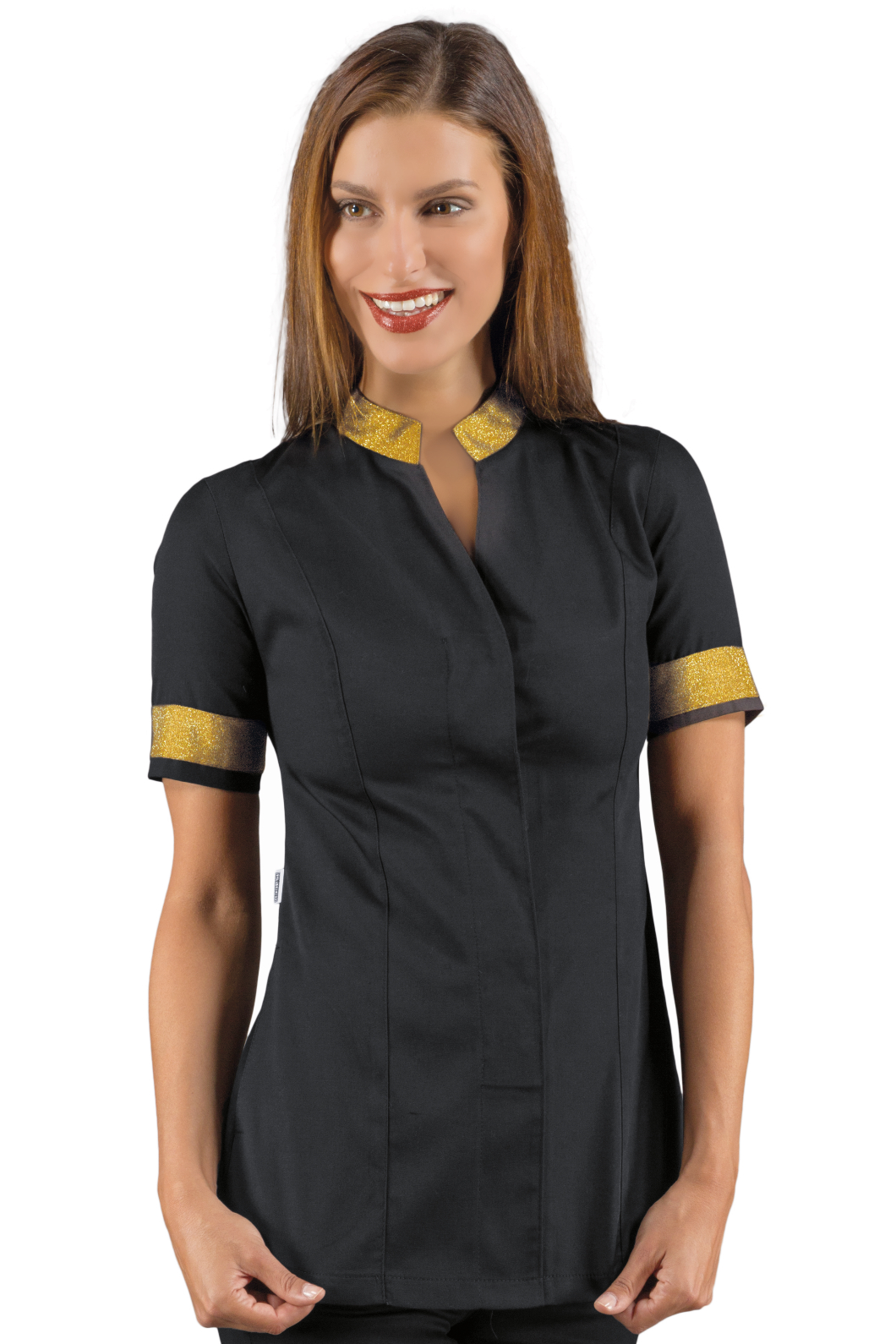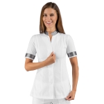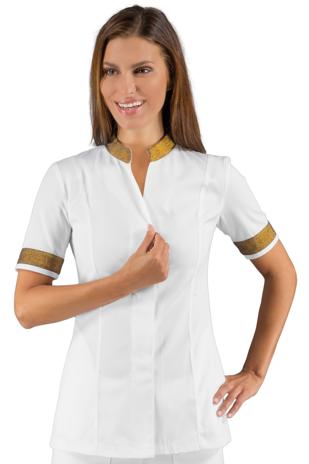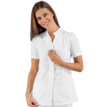 La casacca Hibiscus è una camicia da donna a mezza manica bianco. Per settore estetico e sanitario. Ottima divisa da lavoro per estetiste, massaggiatrici e negozi alimentari. L’indumento è sciancrato con bottoni a pressione.