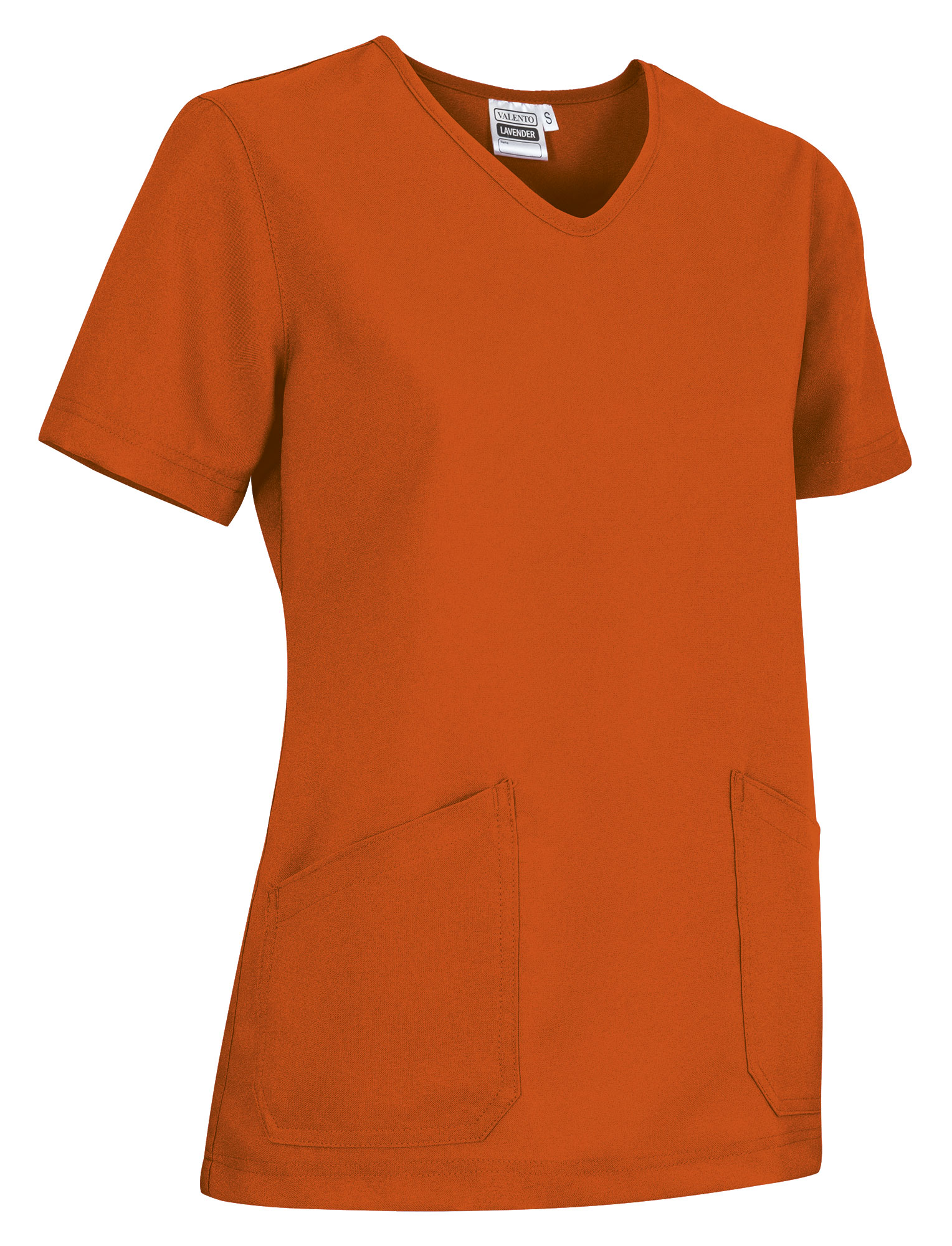 Casacca da lavoro da donna, manica corta, vestibilitá aderente e tinta unita. Realizzata in tessuto di microfibra traspirante, confortevole e versatile. Due tasche frontali per avere tutto a portata di mano. Scollo a V ampio, comodo e fresco. Doppie cuciture sull´orlo e sulle maniche per aumentarne la resistenza. Metodi di personalizzazione idonei: serigrafia, ricamo, trasferimento, vinile. Ideale come abbigliamento da lavoro, divisa da lavoro per personale sanitario e per centri estetici.