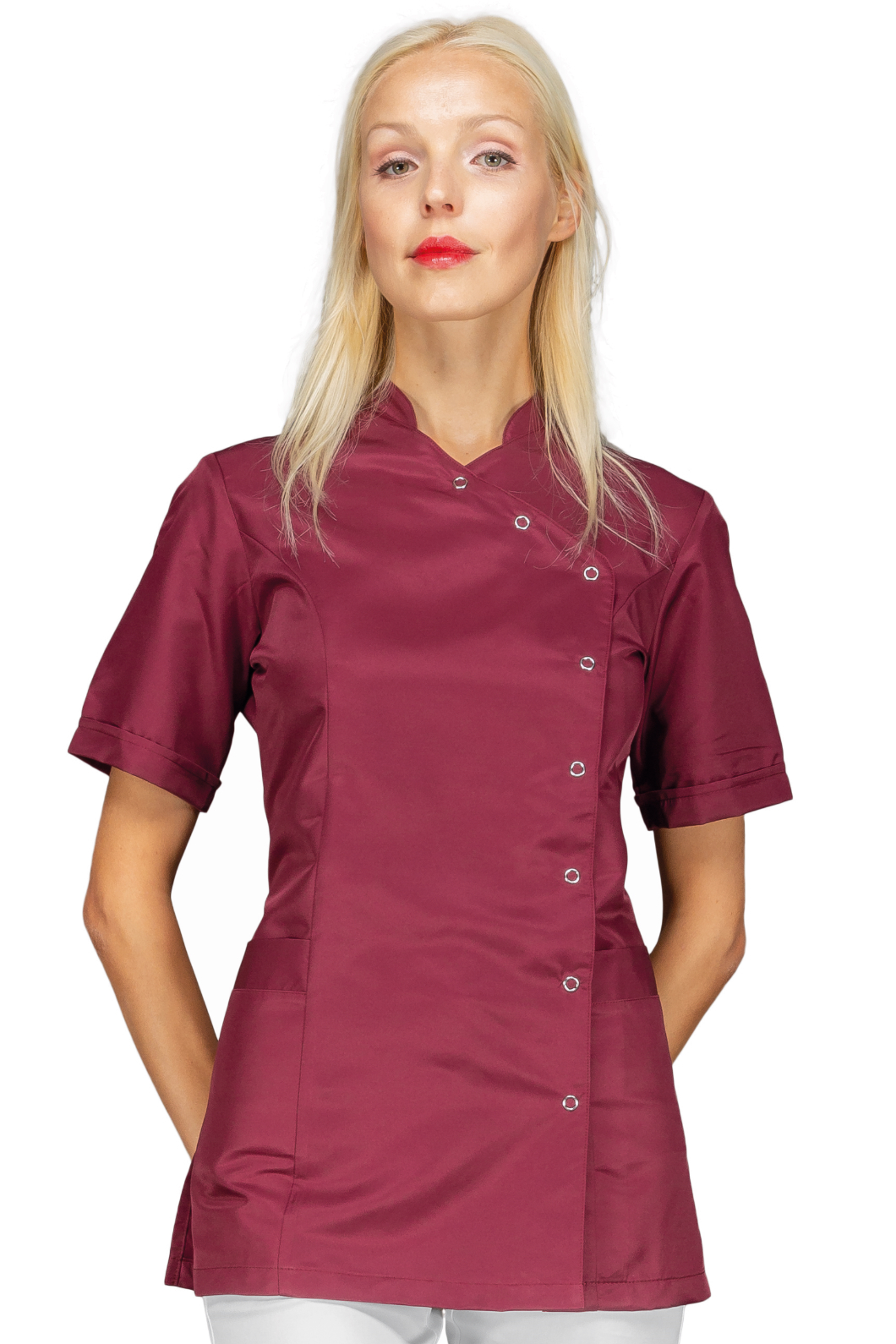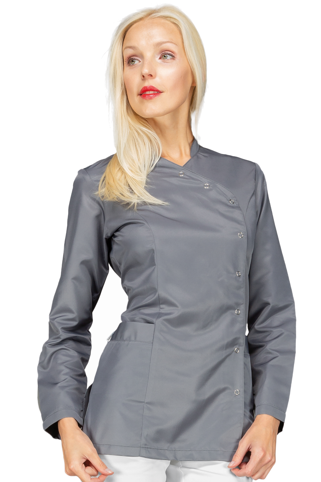 La casacca Nizza è una camicia da donna con bottoni a manica lunga bianco. Per settore medicale, estetico e sanitario. Ideale come divisa da lavoro per medico ed infermiere. Collo alla coreana, con 2 tasche e allacciatura laterale.