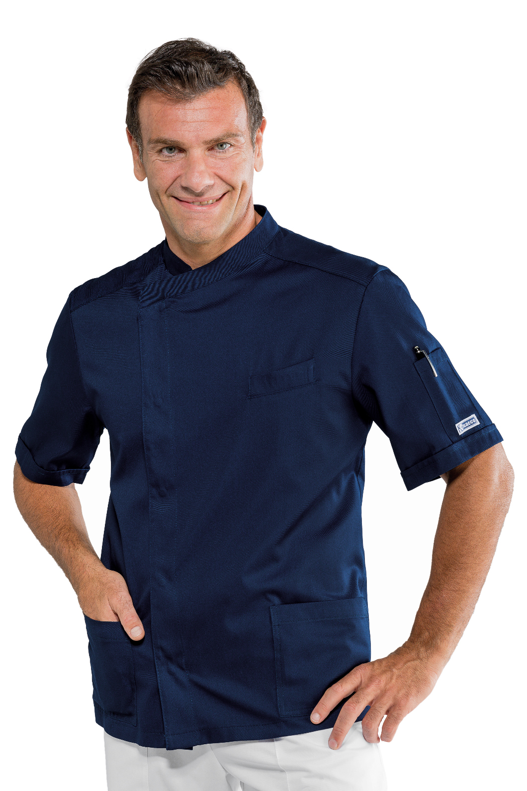 La casacca Philadelphia è una giacca da uomo a mezza manica nero. Adatta al settore sanitario, estetico e alimentare. Utilizzata come divisa da lavoro per aziende di servizi, pulizie, industria. Abbottonatura nascosta antinfortunistica, bottoni a pressione, tasche e taschino.