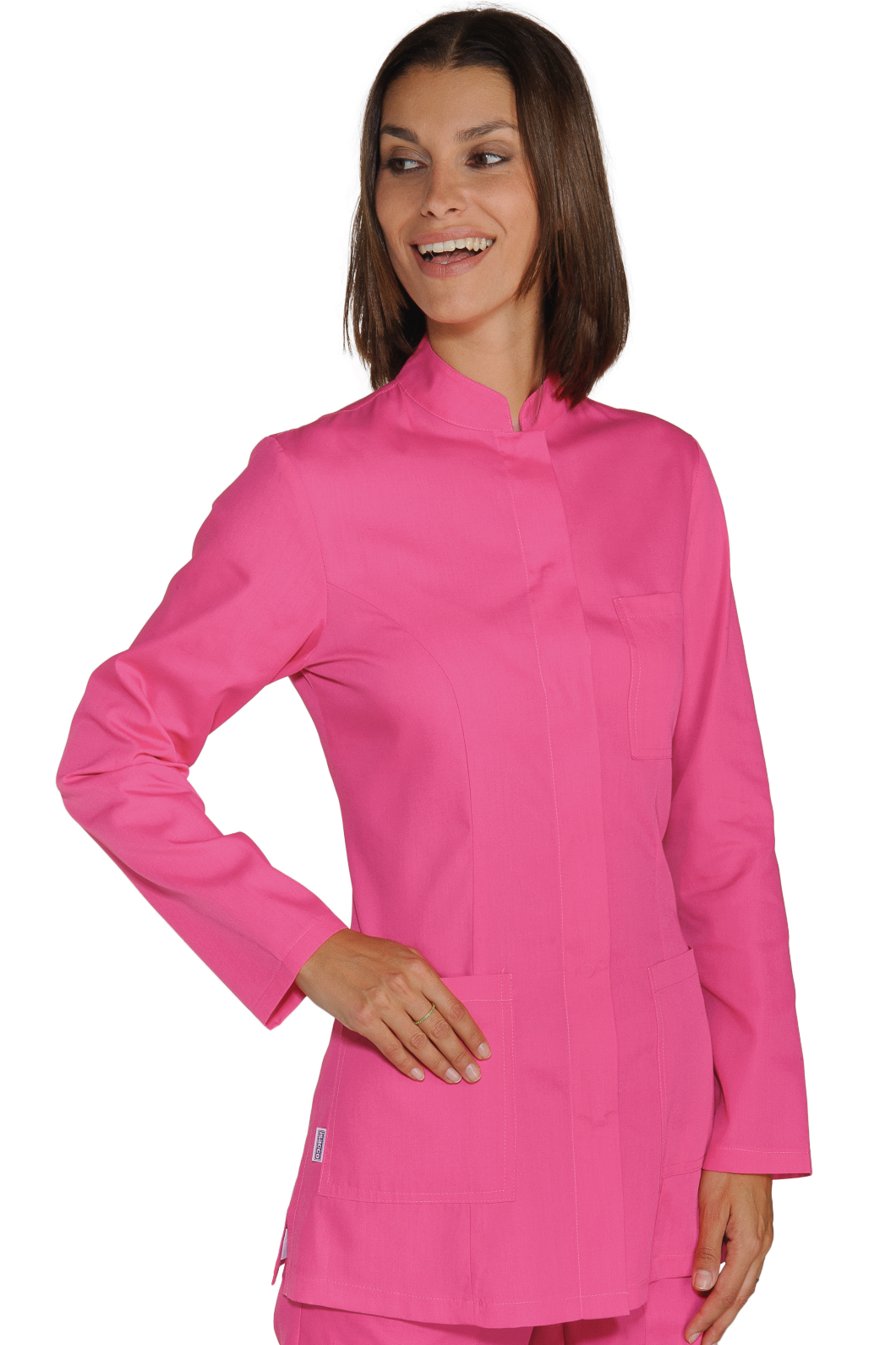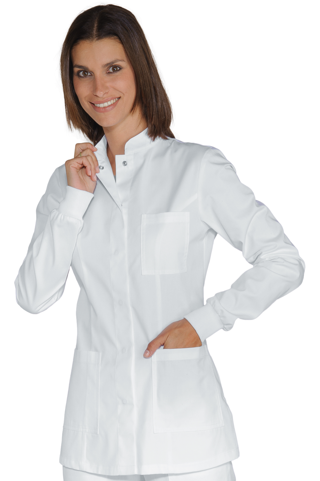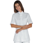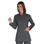La Casacca Portofino è una camicia da donna a manica lunga bianco. Per settore medico estetico e sanitario. Utilizzata come divisa per dentista e infermiere. Con tre tasche di cui una al petto, bottoni a pressione coperti e collo alla coreana.
