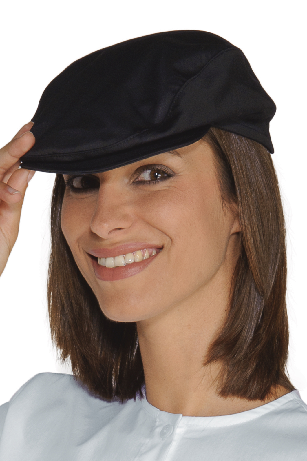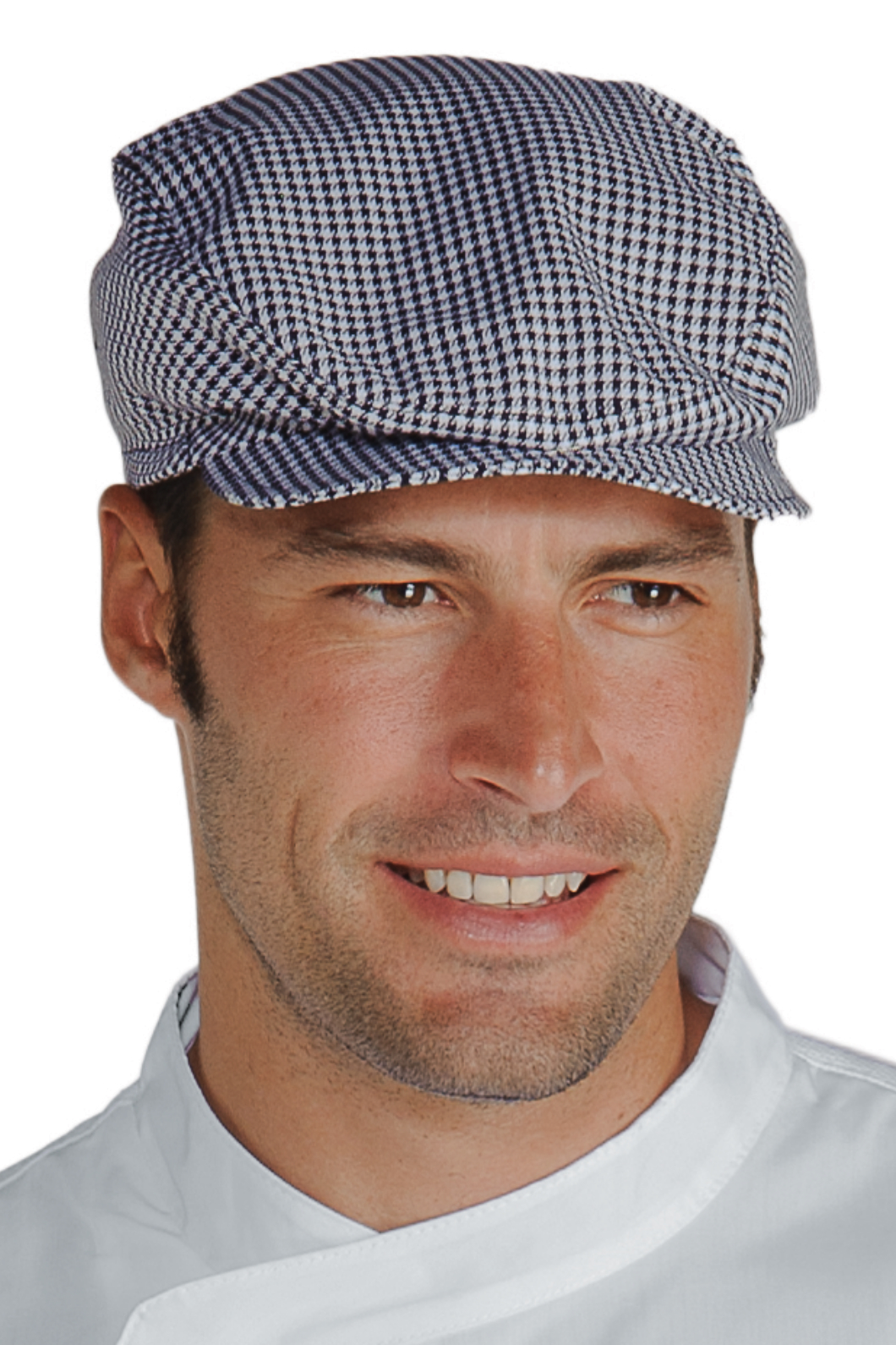 Coppola regolabile tramite velcro e visiera rigida bianco. Per il settore alberghiero e ristorazione. Divisa lavoro per cuoco, bar, pub, ristoranti, negozi alimentari e cucine. Usata in cucina in alternativa alla bustina, alla cuffia o al cappello.