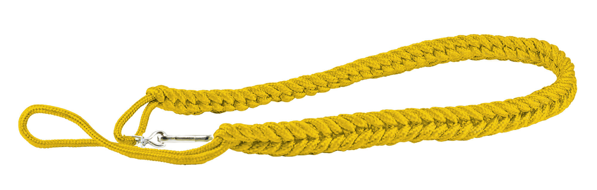 Cordone gala spesso. Realizzato in cordino flessibile e resistente. Doppio intreccio con passanti alle due estremità: uno più lungo per passare attraverso la spallina e uno più corto che include un clip metallico per un facile fissaggio. Ideale come divisa di sicurezza e divisa gala.