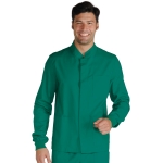 Casacca da uomo Corfù con collo coreano a manica lunga bianco. Settore medicale, estetico, sanitario, ospedaliero, alberghiero e industria. Ottima divisa da lavoro per medico, infermiere e dentista. Anche giacca per pizzaiolo, magazziniere e in cucina.