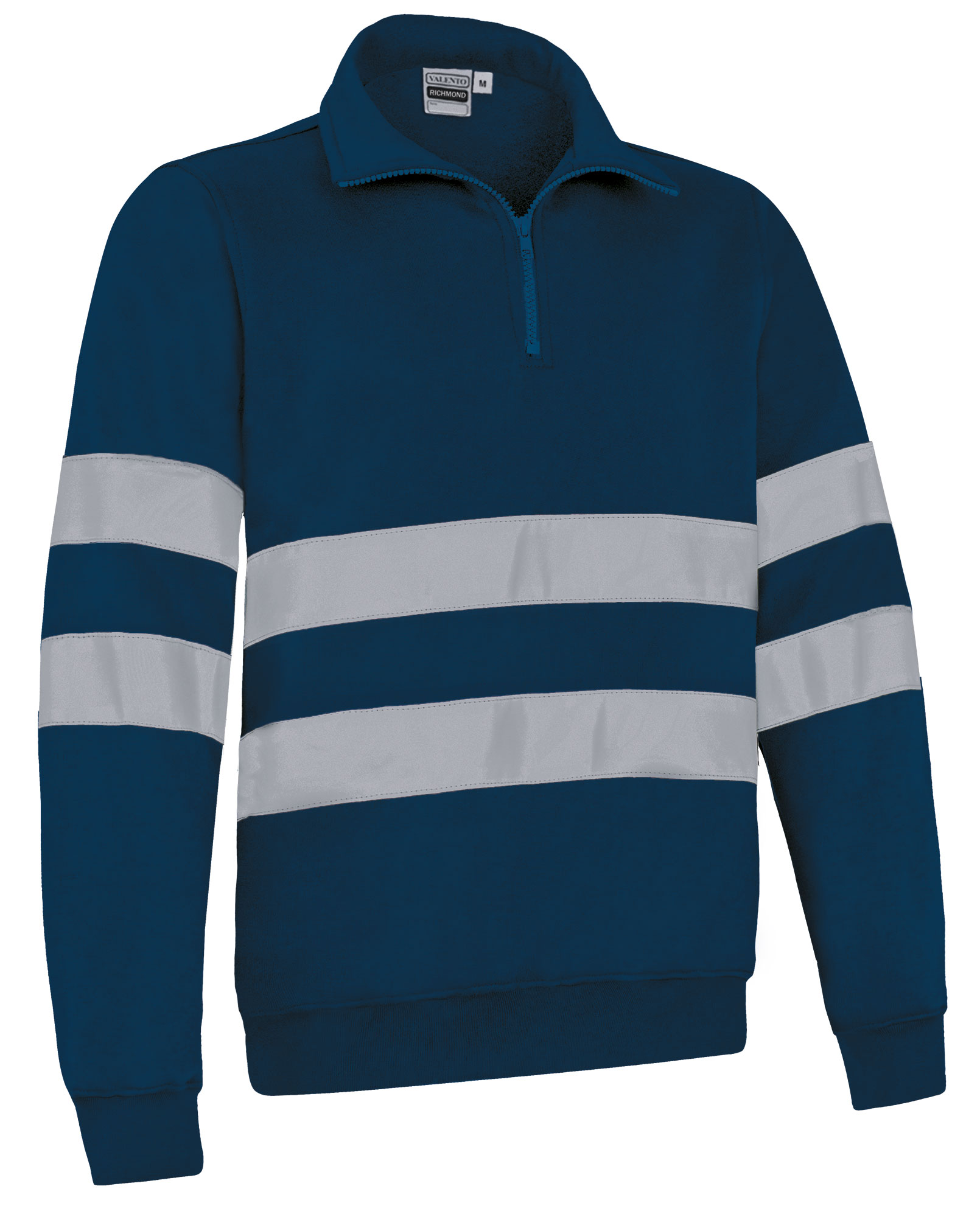 Felpa a visibilitá migliorata. Realizzata in poliestere e cottonfeel e garzato interno per una migliore ritenzone termica e confort, include due nastri catarifrangente cuciti su busto, schiena e maniche che aumentano la visibilitá degli utenti. Indumento certificato come DPI categoria II a visibilitá migliorata in base alle norme 13688 e 17353, tipo B3 per la visibilitá notturna. Collo alto con chiusura centrale a mezza zip per un maggiore calore o ventilazione, a seconda della stagione. Vita e polsini a costine elasticizzate che si adattano comodamente. Metodi di personalizzazione idonei: serigrafia, ricamo, trasferimento, vinile. Ideale come abbigliamento da lavoro e divisa da lavoro.