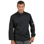 La Giacca da Cuoco Bilbao con Zip unisex a manica lunga nero. Ideale come divisa per uomo e donna da chef in cucina, ristorante o catering. Allacciatura asimmetrica con bottoni a pressione. Con taschino sia al petto che alla manica.