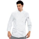 La Giacca da Cuoco Classica Bottoni a Pressione a manica lunga bianco. Ottima divisa per uomo e donna da chef in cucina, ristorante o catering. Taschino alla manica e allacciatura con bottoni antipanico, modello classico.