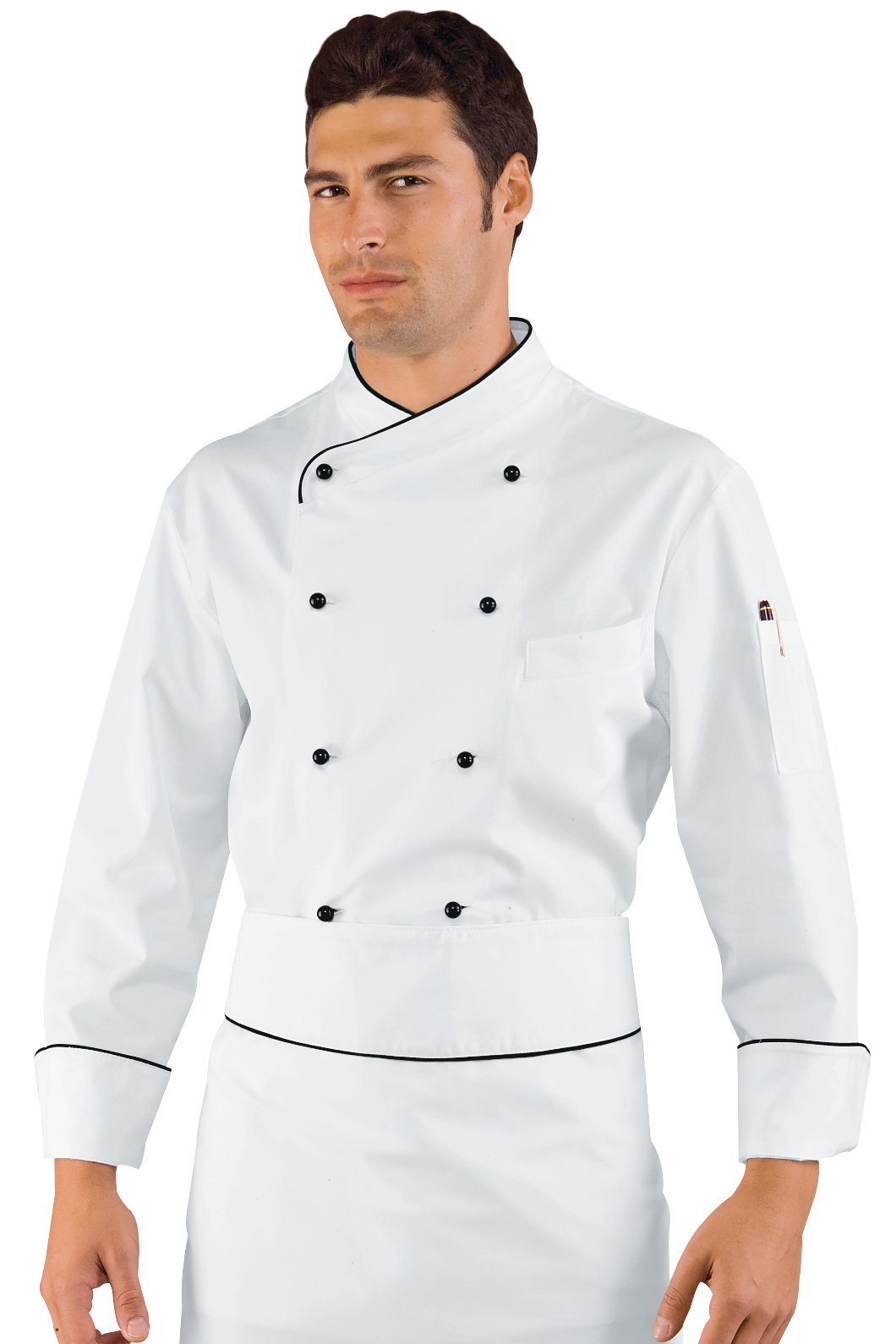 La Giacca da Cuoco Pechino unisex a manica lunga bianco. Ideale come divisa per uomo e donna da chef in cucina, ristorante o catering. Allacciatura asimmetrica con bottoni antipanico e spacchi. Taschino al petto e alla manica.