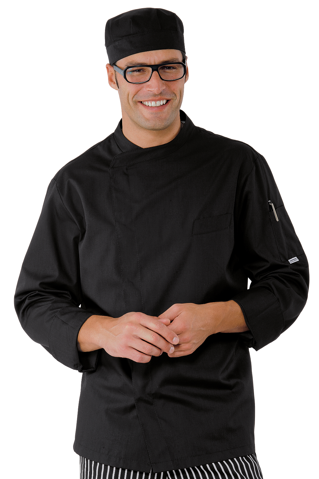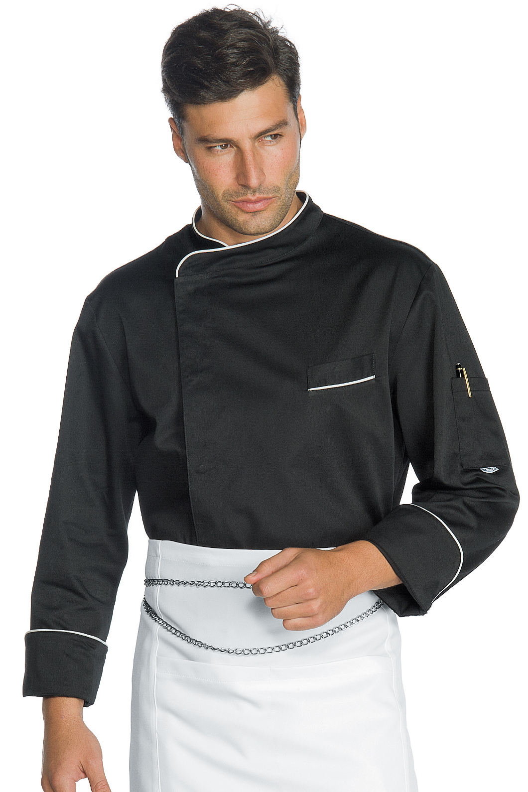 La Giacca da Cuoco Pretoria unisex traspirante a manica lunga nero e bianco. Perfetta come divisa per uomo e donna da chef in cucina, ristorante o catering. Con schiena in rete microfor per migliorare la traspirazione.