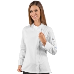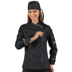 La Giacca da Cuoco Lady Zip a manica lunga bianco. Ideale come divisa da chef in cucina, ristorante o catering. Taschino alla manica e allacciatura asimmetrica con zip. Con collo e polsi in contrasto, modello sciancrato.