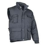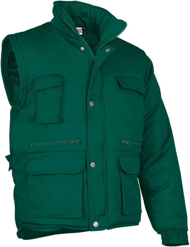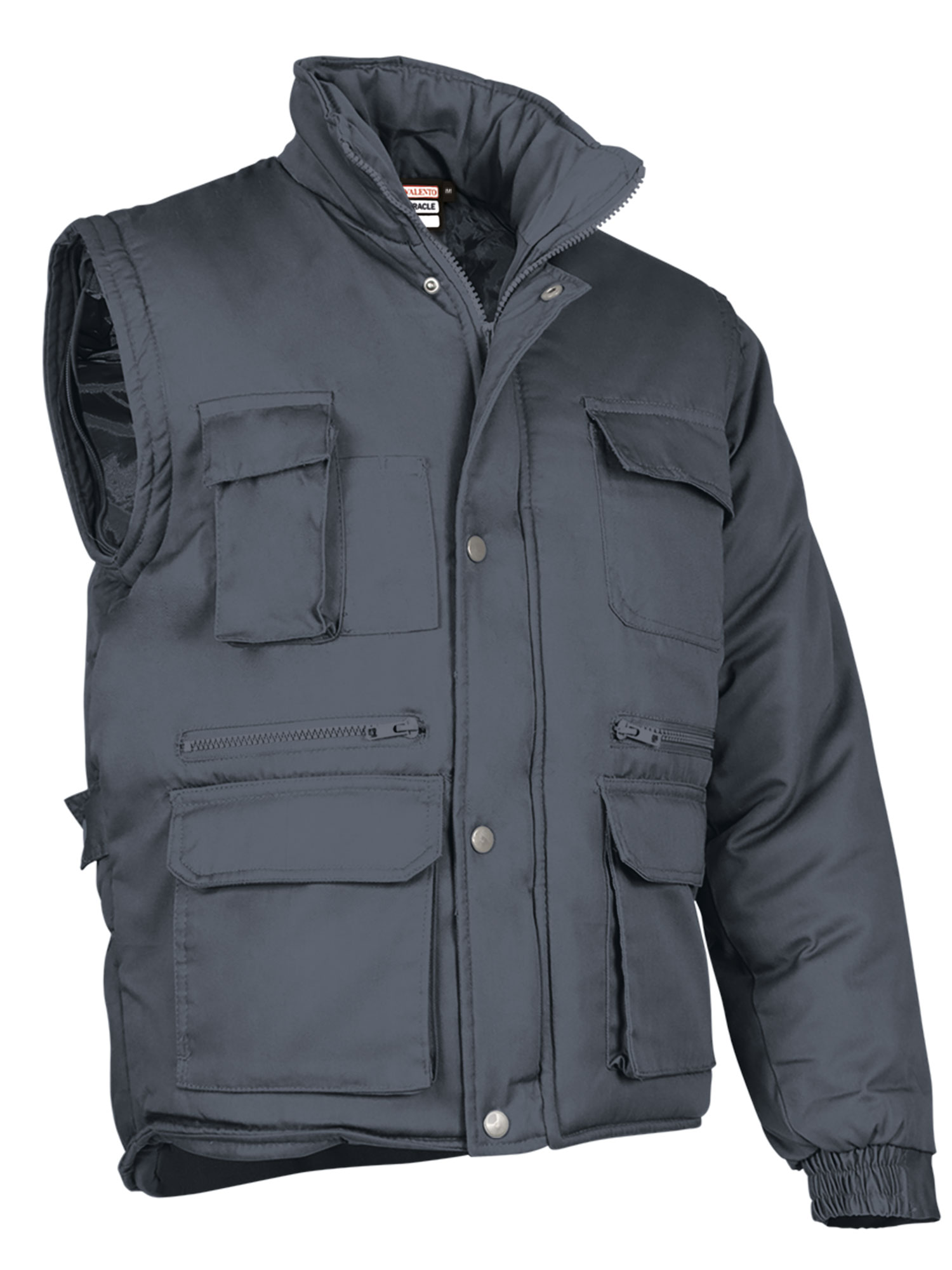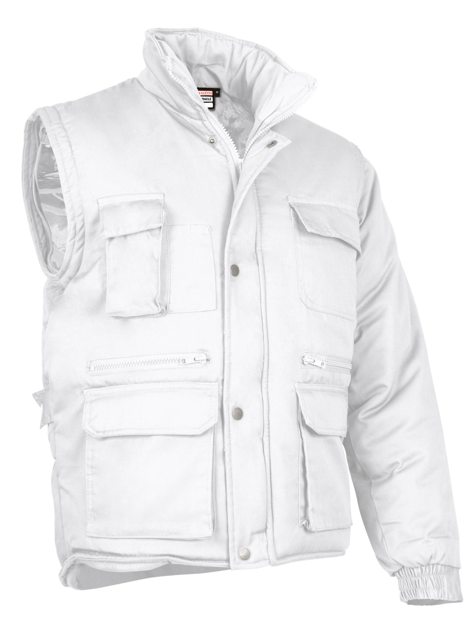 Giacca multitasche trapuntata con maniche staccabili che può essere trasformata in gilet. Realizzata in resistente e durevole tessuto twill all´esterno, imbottitura trapuntata e fodera liscia all´interno per una migliore ritenzione termica. Giacca facilmente trasformabile in gilet rimuovendo le maniche che sono fissate da cerniere. Vita con regolatori laterali a pressione per una migliore vestibilità e orlo aperto con una parte posteriore più lunga per proteggere la zona lombare. Due tasche anteriori con soffietto, due tasche superiori con patta e chiusura a velcro, due tasche oblique, due ad altezza intermedia con chiusura a cerniera, un vano portapenne e una tasca interna con chiusura a velcro per avere tutto a portata di mano. É dotata di una zip interna sul retro per facilitare i diversi tipi di personalizzazione: serigrafia, ricamo, transfer, patch, vinile. Ideale come abbigliamento da lavoro, divisa da lavoro e abbigliamento promozionale.