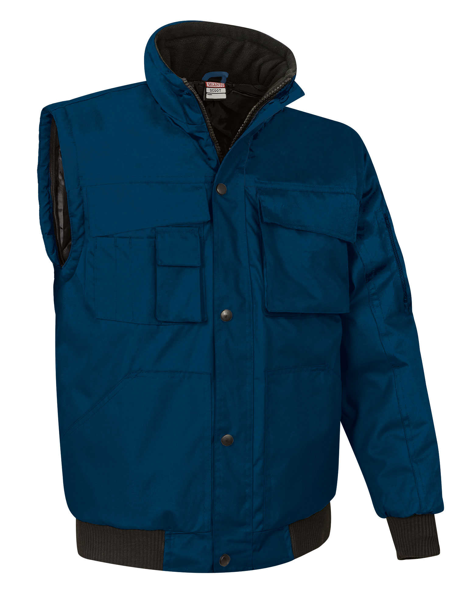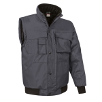 Giacca trapuntata multitasche con maniche staccabili che si trasforma in gilet. Realizzata in tela impermeabile all´esterno, imbottitura trapuntata e fodera liscia all´interno che garantisce ritenzvoione termica e confort. La giacca si trasforma facilmente in gilet rimuovendo le maniche che sono fissate da cerniere. Polsini e vita in costine grosse elasticizzate che si adattano comodamente. Due tasche anteriori divise tipo canguro, due tasche superiori con patta e chiusura in velcro (la sinistra con cerniera per facilitare la personalizzazione), uno scomparto per penne, una piccola tasca per riporre gli accessori, una tasca sulla manica sinistra con cerniera e una tasca interna con velcro, per avere tutto a portata di mano. É dotata di una cerniera interna sul retro per facilitare i diversi tipi di personalizzazione: serigrafia, ricamo, trasferimento, patch, vinilo. Ideale come abbigliamento da lavoro, abbigliamento sportivo e abbigliamento casual.