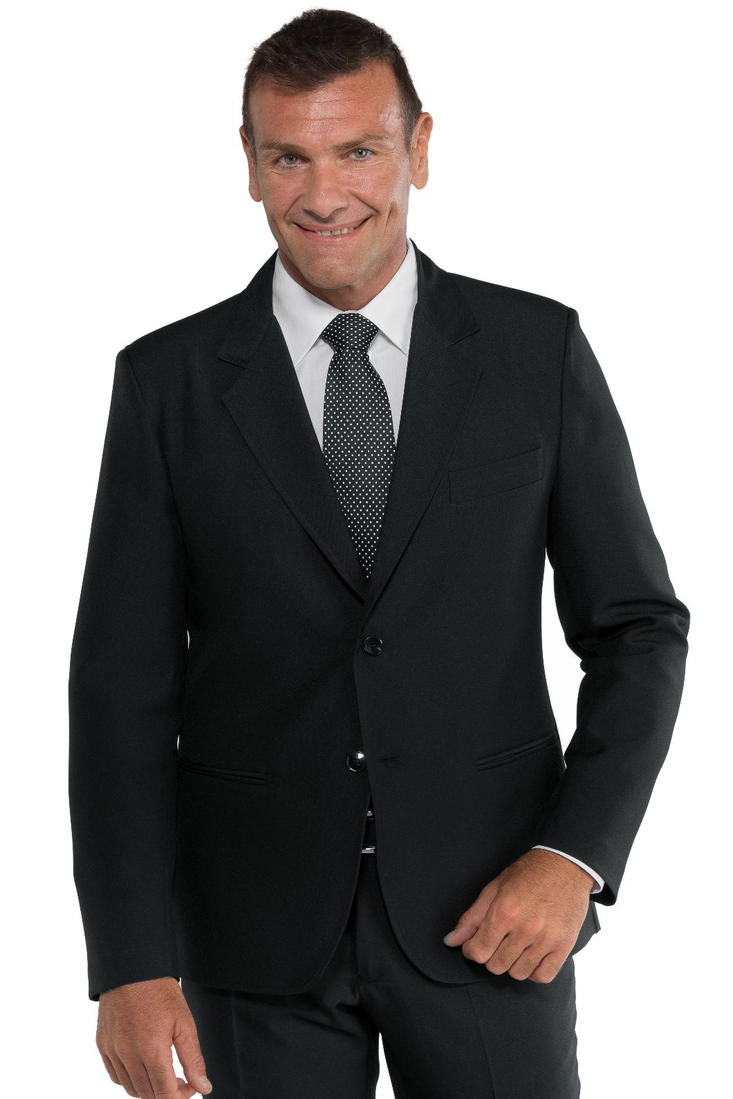 Giacca classica con 2 bottoni e collo a lancia da cameriere nero. Ottima per settore alberghiero e servizio in sala. divisa da lavoro per bar, pub, ristoranti, enoteche e catering. Con 2 tasche a filetto e taschino interno.