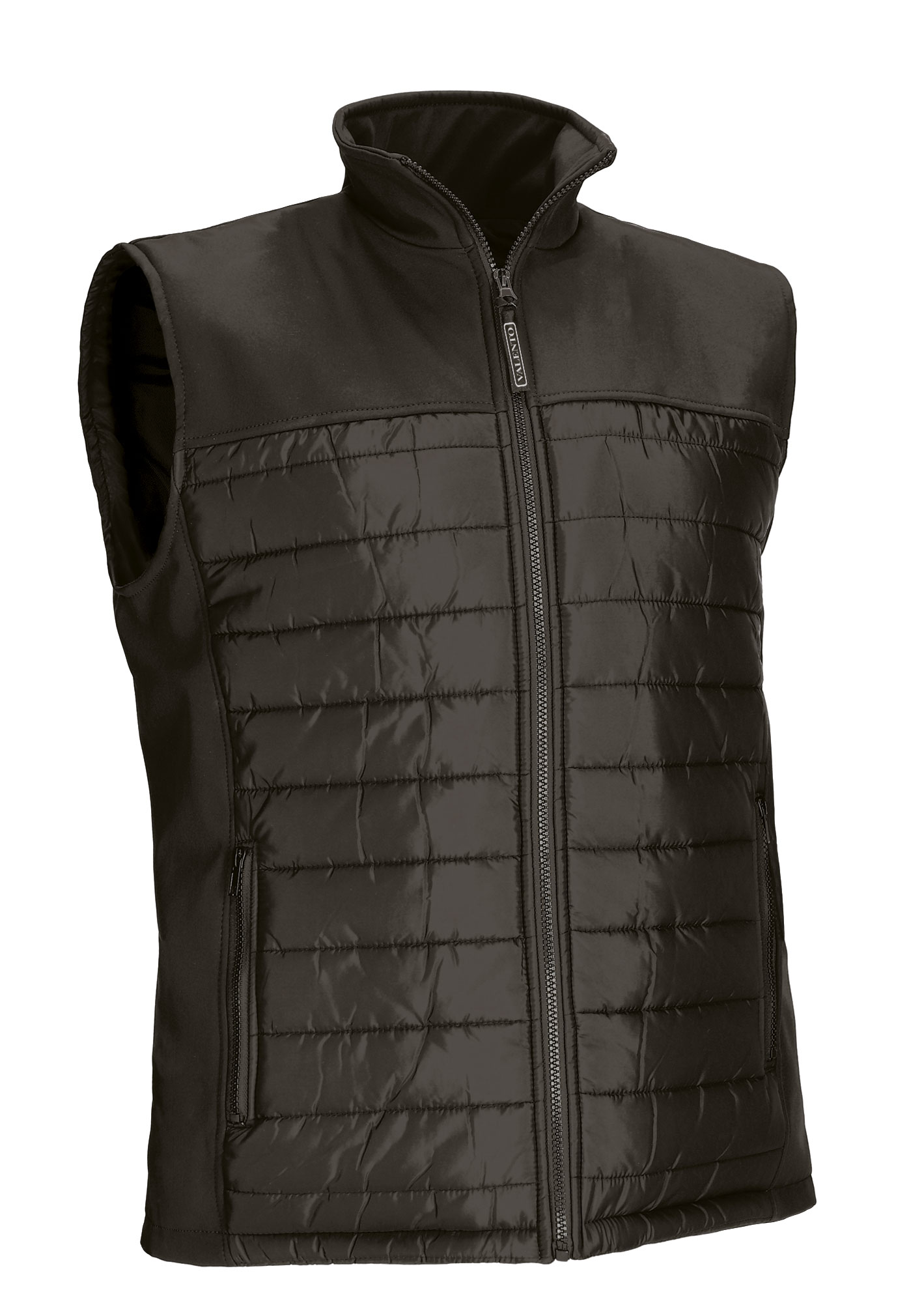 Gilet imbottito con tasche. Realizzato con tessuto trapuntato a tre strati e tessuto softshell su sprone e lati. Collo alto chiuso da zip centrale per maggior calore e confort. Vita dritta con cinta elastica e fermo per una maggiore comoditá. Due tasche verticali con chiusura zip e un taschino interno con chiusura in velcro per avere tuto a portata di mano. É dotato di una zip interna sul retro per facilitare i diversi tipi di personalizzazione: serigrafia, ricamo, trasferimento, patch e vinilo. Ideali come abbigliamento da lavoro, abbigliamento promozionale e abbigliamento casual