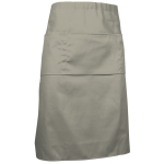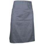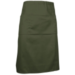 Grembiule senza pettorina, multitasche, tipo francese. Realizzato in tessuto twill misto cotone misto/poliestere resistente e durevole. Ampi lacci laterali da regolare tramite nodo in vita. Ampia tasca centrale con tre scomparti per avere tutto a portata di mano. Contorni con cuciture ripiegate e passanti sulle tasche che ne aumentano la resistenza. Metodi di personalizzazione idonei: serigrafia, vinile, transferimento, ricamo. Ideale come divisa da ristorazione e abbigliamento promozionale.