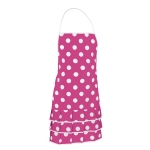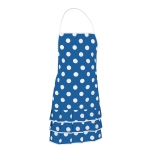 Grembiule con pettorina e dettaglio flamenco. Realizzato in tessuto piatto di poliestere con un tocco morbido di cotone, resistente e durevole. Stampa a pois con colore a contrasto che porta originalità e allegria in cucina. Lacci laterali da regolare tramite nodo in vita e cinturino sottile da appendere al collo. Parte inferiore con tre balze che imitano il tradizionale stile flamenco. Metodi di personalizzazione idonei: serigrafia, vinile, trasferimento, ricamo. Ideale come abbigliamento promozionale, souvenir e come regalo personalizzato.