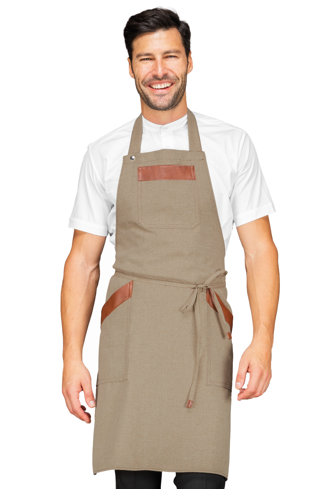 Grembiule Oregon , lungo Unisex nero. Ideale come divisa da lavoro per cantine, bar, enoteche e bistrot. Con allacciatura dietro al collo che ne permette la regolazione della pettorina. Con tasca ampia al petto, 2 ampie tasche in vita e con inserti in pelle.