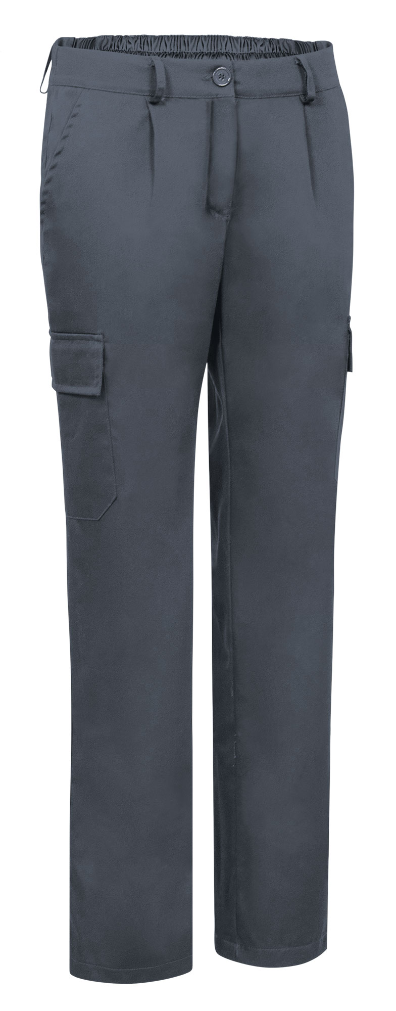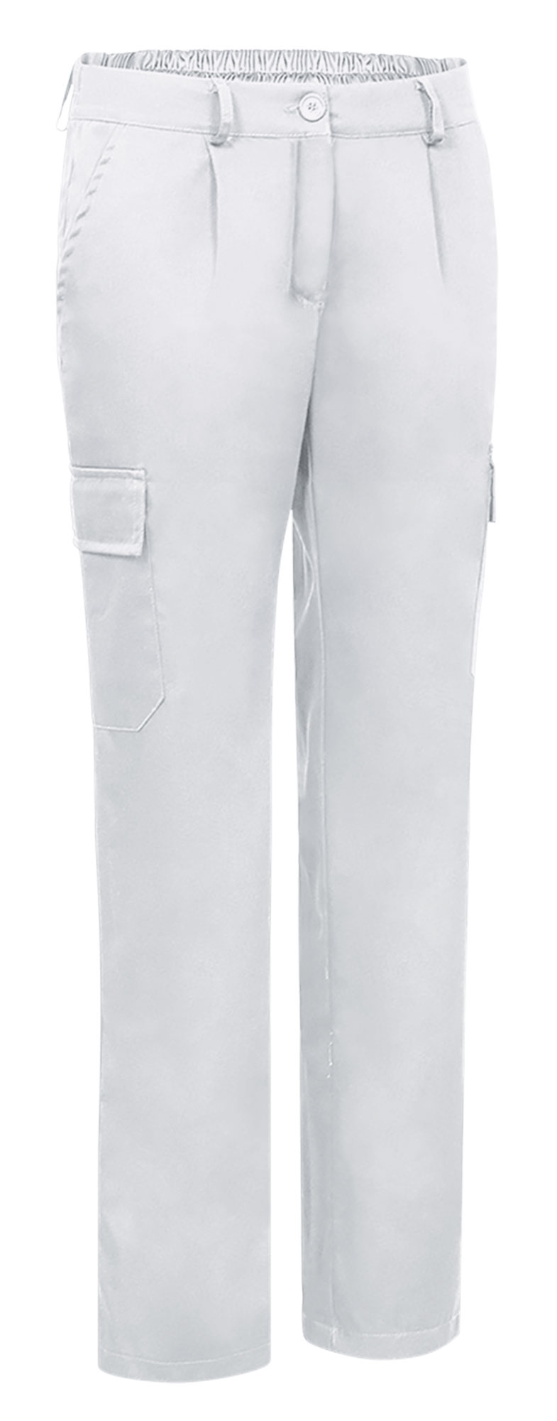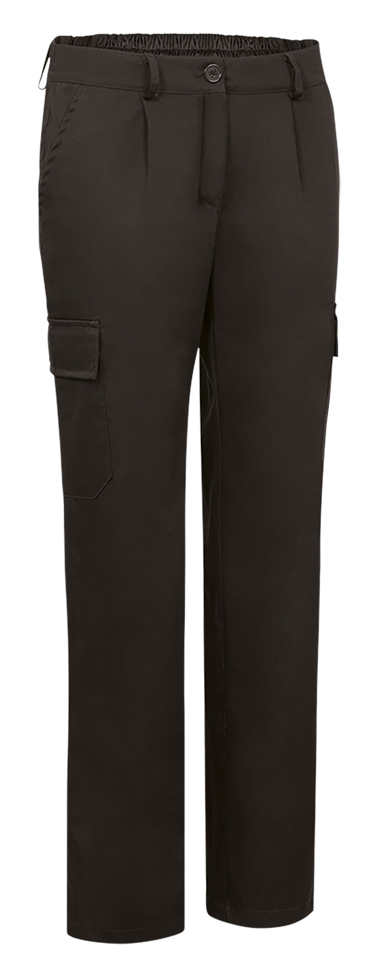 Pantaloni da lavoro multitasche da donna. Realizzati in twill misto cotone/poliestere per garantire durata e resistenza. Chiusura con bottoni da destra a sinistra e zip nascosta sotto l´abbottonatura, vita sagomata, passanti per cintura, pences anteriori e metà posteriore elasticizzata per una migliore vestibilità e comfort. Due tasche oblique sui fianchi, una tasca posteriore destra applicata e due tasche laterali con abbottonatura e chiusura a velcro, per avere tutto a portata di mano. Cuciture principali rinforzate e punti di maggiore trazione rinforzati con passanti di sicurezza per garantire durata e resistenza. Metodi di personalizzazione idonei: serigrafia, ricamo, transfer, vinile. Ideali come abbigliamento da lavoro.