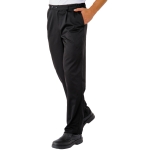 Pantalone uomo da lavoro nero. Per settore alimentare, medicale e alberghiero. Ottima divisa da lavoro per cucina (chef cuoco), aziende e industrie. Con elastico ai lati e bottone in vita, 2 tasche davanti, tasca posteriore.
