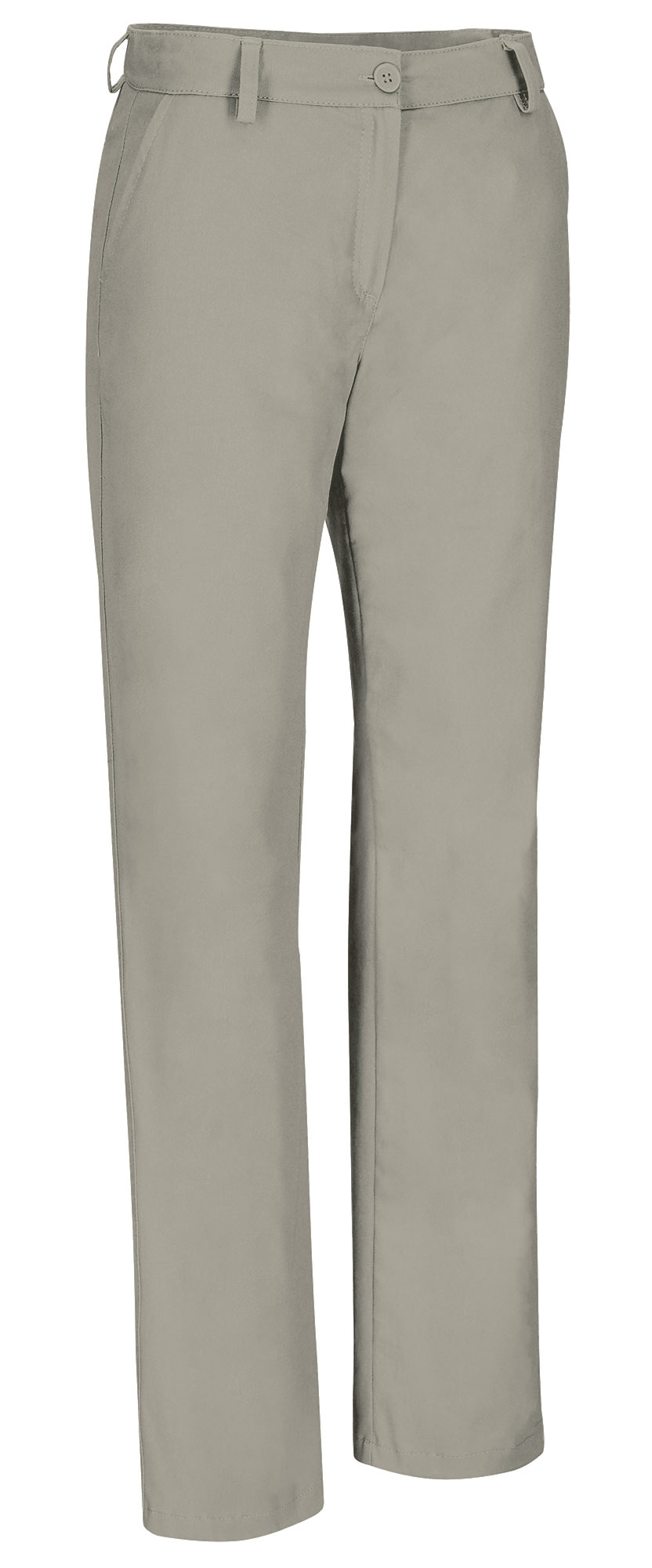 Pantaloni chino elasticizzati da donna. Tessuto twill elasticizzato per una maggiore durata e mobilità. chiusura con bottoni da destra a sinistra e zip nascosta sotto l´abbottonatura, vita sagomata con passanti per cintura per una migliore vestibilità e un maggiore comfort. Due tasche oblique sui fianchi e due tasche posteriori ad asola con chiusura a bottone, per avere tutto a portata di mano. Cuciture principali rinforzate e punti di maggiore trazione rinforzati con passanti di sicurezza per una maggiore durata e resistenza. Metodi di personalizzazione idonei: serigrafia, ricamo, transfer, vinilo. Ideali per divise aziendali, divisa da rappresentante, divisa da ristorazione, ecc.