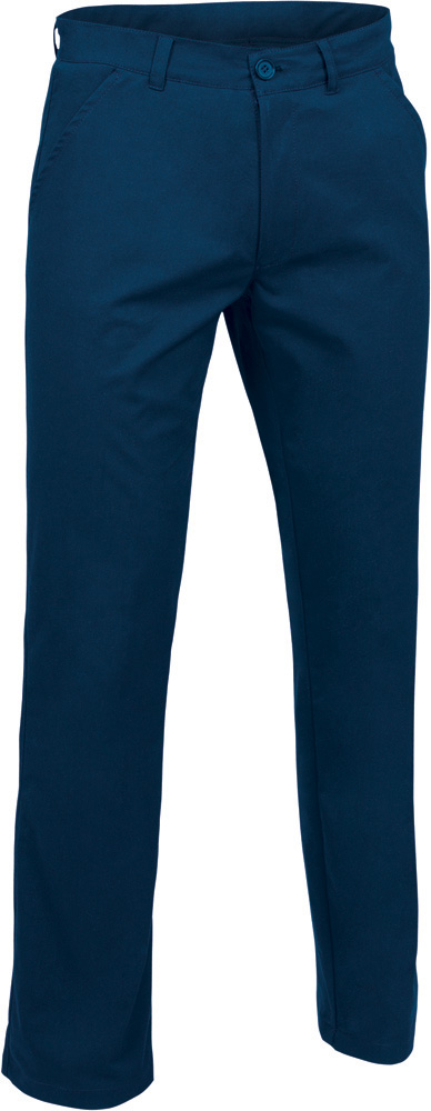 Pantaloni chino taglio regolare. Realizzati in tessuto twill monoelastico per una maggiore durata e mobilità. Chiusura con bottoni e zip nascosta sotto l´abbottonatura e vita con passanti per cintura per una migliore vestibilità e comfort. Due tasche oblique sui fianchi e due tasche posteriori ad asola con chiusura a bottone, per avere tutto a portata di mano e disponibile. Cuciture principali rinforzate e punti di trazione rinforzati con passanti di sicurezza per una maggiore durata e resistenza. Metodi di personalizzazione idonei: serigrafia, ricamo, trasferimento, vinile. Ideali come divisa aziendale, divisa da rappresentante, divisa da ristorazione, ecc.