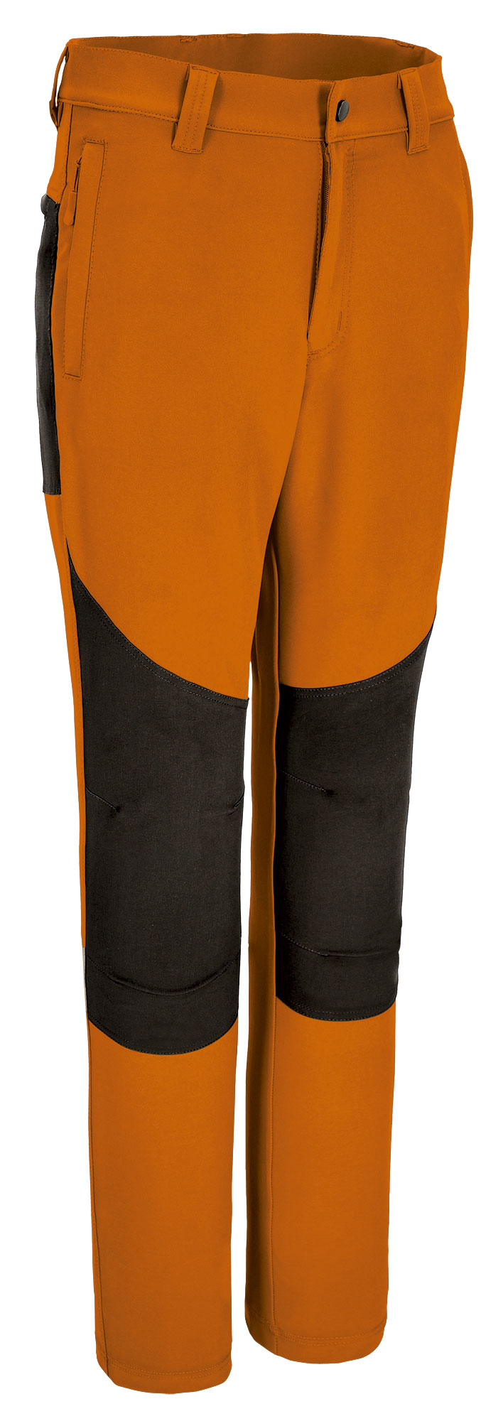 Pantaloni bielastico bicolore. Realizzati in tessuto bielastico complex per un miglior movimento, finiture idroreppellenti per maggior confort, rinforzi in microfibra sulla parte posteriore selle ginocchia, in colore a contrasto, per una maggior durata. Vita con passanti per cintura e chiusura con gancio e zip nacosta da patta per un maggior confort. Due taschini verticali ai fianchi e due sulla parte posteriore, tutti chiusi da zip a vista, per tenere tutto a portata di mano. Cuciture principali rinforzate per una maggior durata e resistenza. Metodi di personalizzazione idonei: serigrafia, ricamo, trasferimento, vinilo. Ideale come abbigliamento da lavoro, trekking e attivitá all´aperto.