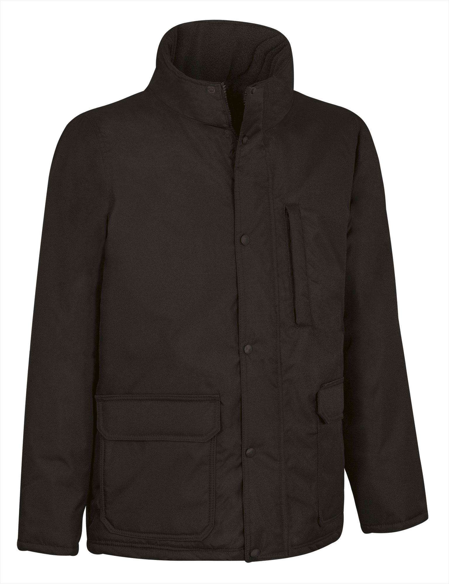 Parka impermeabile con cappuccio a scomparsa e design in tinta unita. Realizzato con tessuto canvas impermeabile all´esterno, imbottitura trapuntata e fodera interna che garantisce una buona ritenzione termica. Cuciture termosaldate per evitare infiltrazioni d´acqua e mantenere il corpo asciutto in caso di pioggia. polsini elastici e vita dritta con cordino elastico regolabile e freno, per una migliore vestibilità e un maggiore comfort. Due tasche anteriori con chiusura a patta, una tasca verticale sul petto a sinistra e una tasca interna, entrambe con chiusura a zip per avere tutto a portata di mano. É dotato di una zip interna sul retro per facilitare i diversi tipi di personalizzazione: serigrafia, ricamo, trasferimento, patch, vinile. Ideale come abbigliamento da lavoro e divisa aziendale.
