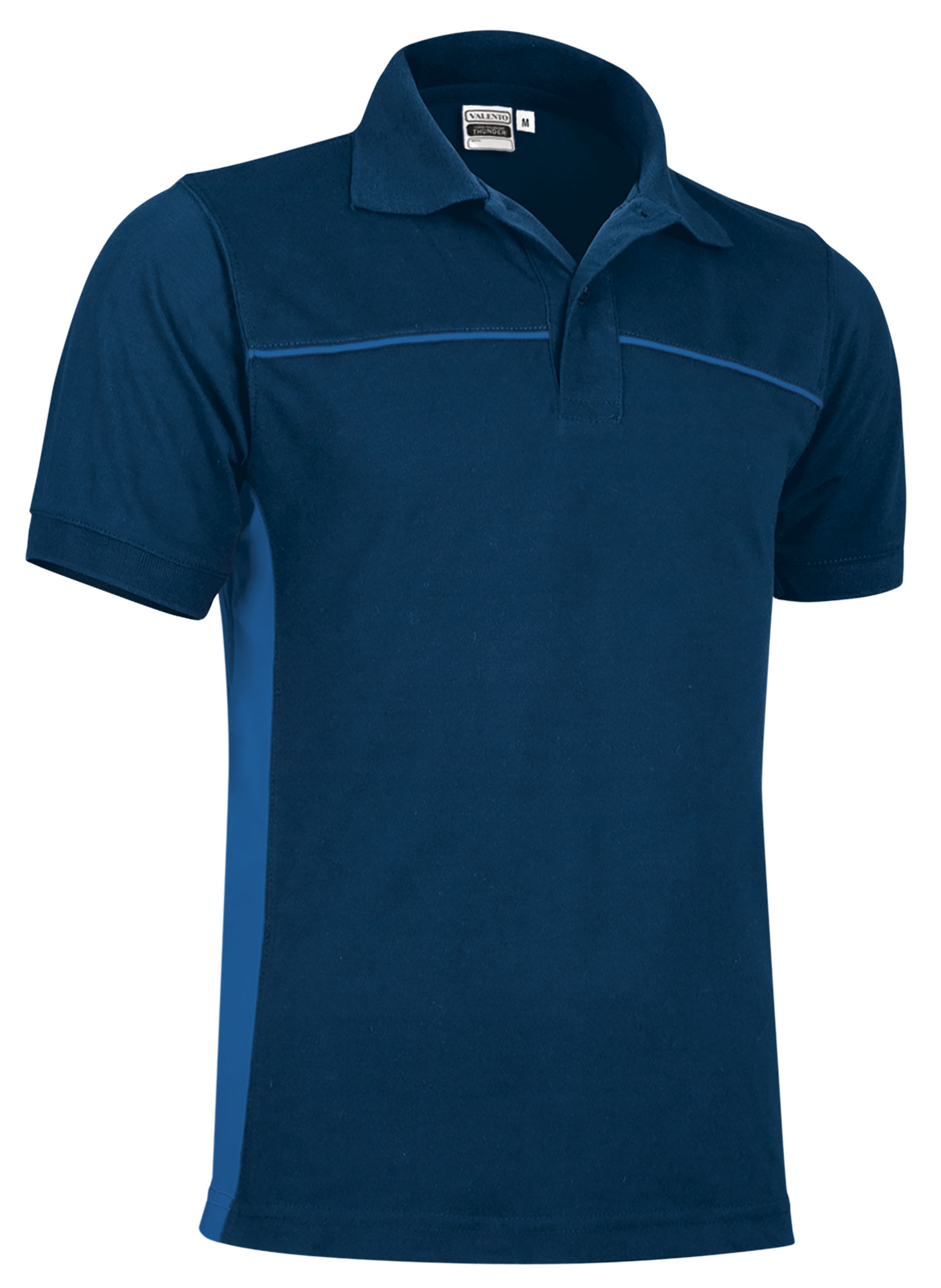 Polo a manica corta con design bicolore. Realizzata in tessuto piqué, misto cotone/poliestere, resistente e durevole. Colori neutri come base abbinati a colori vivaci sulle bande laterali e sul vivo sul petto. Colletto con abbottonatura centrale e due bottoni tono su tono. Doppie cuciture sul fondo per aumentarne la resistenza e spacchetti laterali per un maggiore comfort. Metodi di personalizzazione idonei: serigrafia, ricamo, transfer, patch. Ideale come divisa da lavoro e da abbinare al resto della linea Thunder: t-shirt, pantaloni, felpa, gilet, ecc.