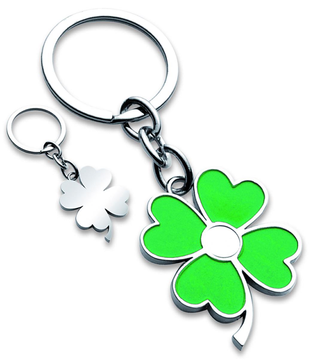 PORTACHIAVI QUADRIFOGLIO IN METALLO E LACCA VERDE
