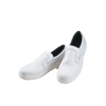 Scarpa da uomo senza lacci bianco. Utilizzato in ospedale (infermiere e medico), cucina (cuoco), negozi alimentari o estetista ed Industria (magazzino). Antiscivolo, antistatico, antiolio, antiacido, puntale in acciaio marcatura CE EN 345-1 S1.
