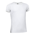 T-shirt elastica a manica corta, girocollo e taglio aderente. Realizzata in tessuto elasticizzato di cotone pettinato con elastan morbido e comodo. Collo elastico a costine che si adatta comodamente. Doppia cucitura su collo, orlo e maniche che ne aumenta la resistenza. Nastro interno sul collo che ne rinforza la struttura e riduce la deformazione. Metodi di personalizzazione idonei: serigrafia, ricamo, trasferimento, vinile. Ideale coem abbigliamento casual e abbigliamento promozionale.