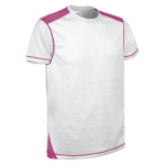 T-shirt tecnica a manica corta, girocollo e disegno bicolore. Realizzata in tessuto tecnico bird-eye traspirante che facilita l´asciugatura rapida e l´eliminazione del sudore. Disegno bicolore facilmente combinabile: cuciture, dettagli sulle spalle e ai lati in colori vivaci combinati in contrasto con il bianco. Cuciture piatte nelle spalle e sotto le maniche che riducono al minimo l´attrito con la pelle. Metodi di personalizzazione idonei: sublimazione su bianco, serigrafia, ricamo, trasferimento, vinile. Ideale per svolgere attività fisiche e come abbigliamento sportivo.