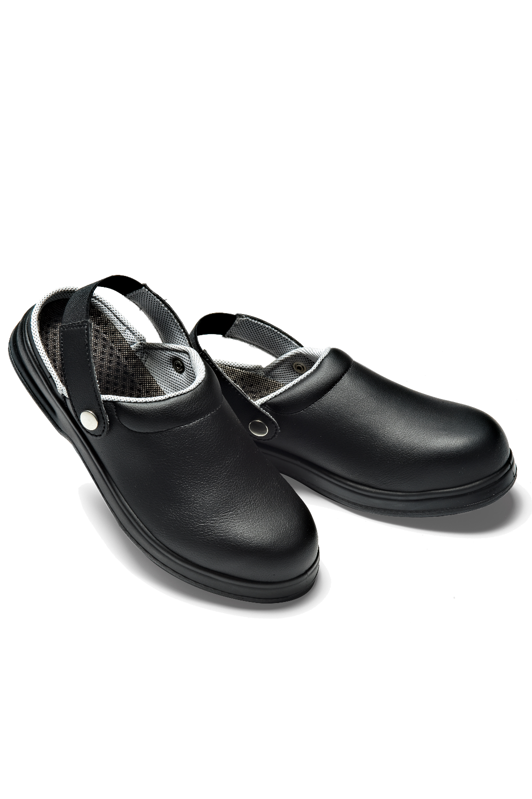 Zoccolo antiscivolo con puntale bianco. Utilizzato in ospedale (da infermiere, medico e dottore), in cucina (cuoco), negozi alimentari o estetista. Antiscivolo, antistatico, antiolio, antiacido, con puntale in acciaio marcatura CE EN 345-1 S1.